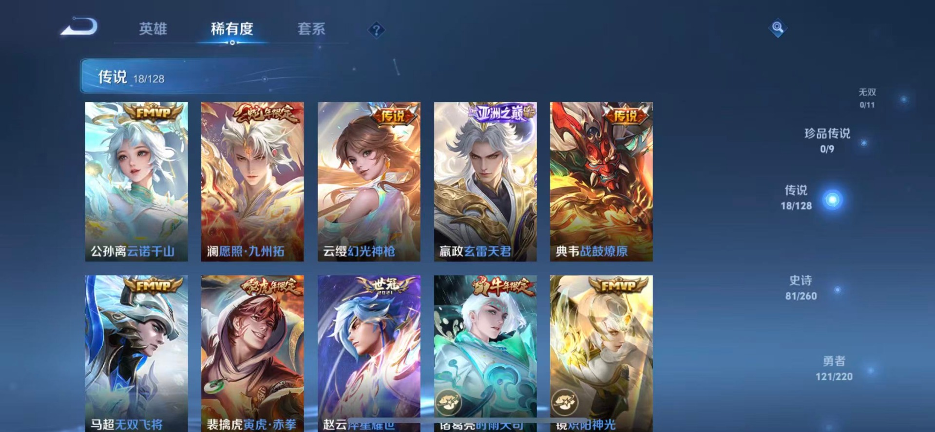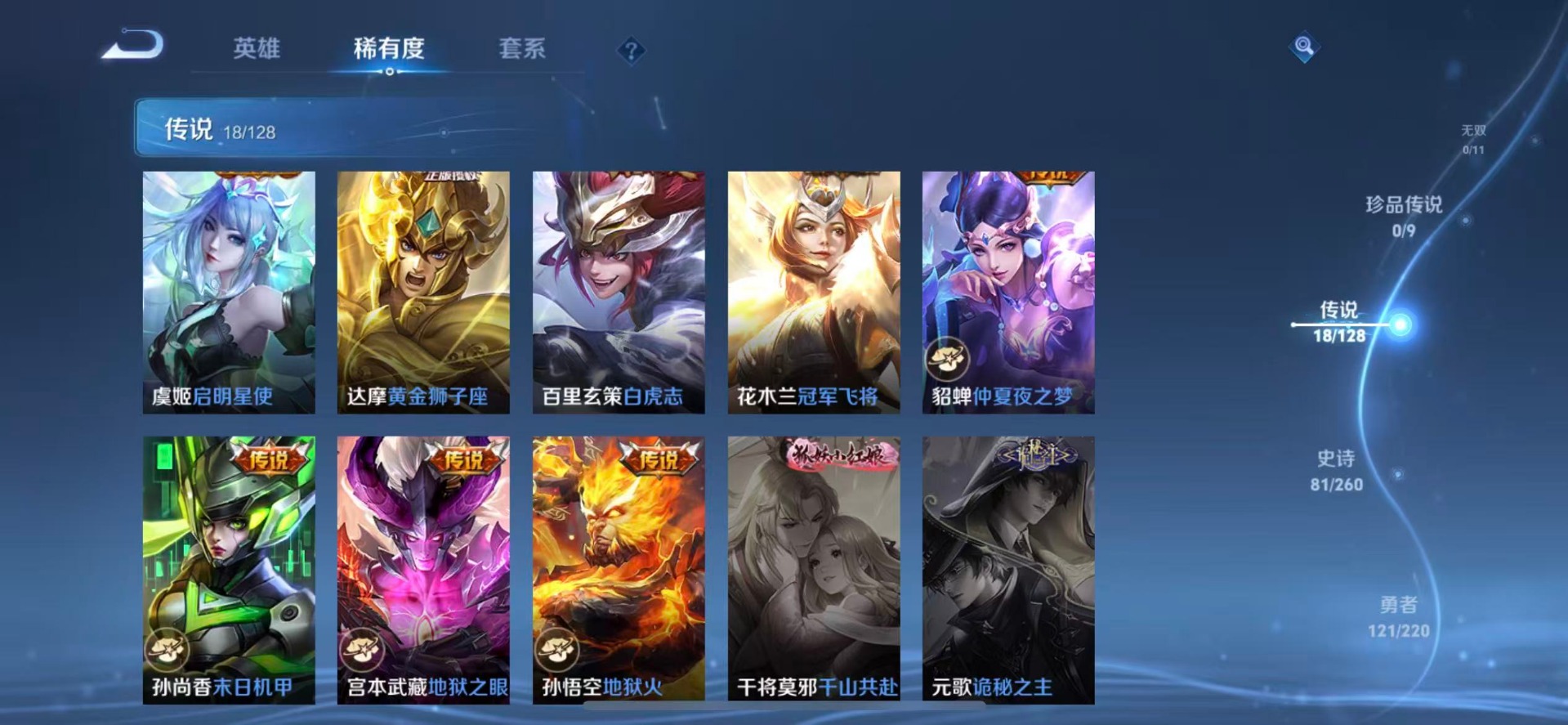 - [11578934]猴子典藏,久胜,紫霞,-可二次-108英雄-165皮肤-1典藏-7传说-31史诗 辉光之辰-后羿 街头霸王-韩信