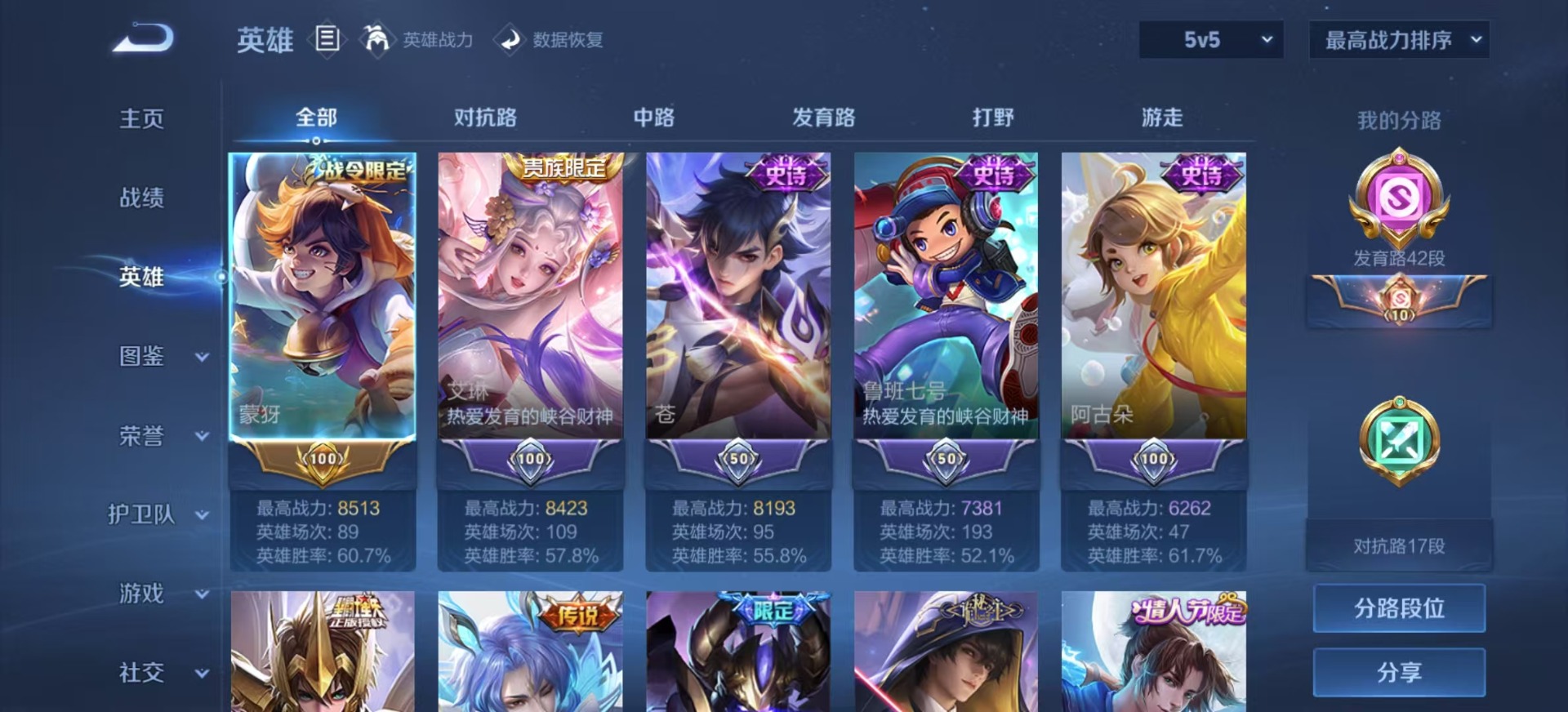 - [11493865]V8 15传说 125英雄 310皮肤 可修改实名 优质装备:黄金狮子座,久胜战神,一念神魔,末日机甲-孙尚香(绿蚂蚱),超时空战士-狄仁杰,无双飞将,山海·炽霜斩(李信年限),妄想实况,涂山容容 传说皮:幻光神枪 珍宝阁皮:妄想食味,优雅恋人,蔷薇恋人 限定皮:愿照·九州拓(澜年限),愿照·岁时盈(虞姬年限),愿照·山河定(司空震年限),愿照·千秋盛(女娲年限),鸣野蒿,至尊宝,神威(电光马子),遇见飞天,高山流水,五谷丰年,青龙志(铠年限),梁祝,御风骁将(吕布年限),逐梦之星,岱宗(典韦年限),天狼溯光者,李小龙,逐梦之影,圣诞老人,默契交锋-花木兰,猪悟能,冰霜恋舞曲,山海·玄木吟(马可年限) 史诗皮:鸭鸭历险记-刘禅,苍鳞隐世,糖绘人间,狼魂孤将,化蝶舞,星界战将,龙之律动,怒海争锋,星界特工,百相守梦-黄忠,紫霞仙子,黄金分割率,特工魅影,江河有灵,魅语,百解令(蒙犽),蒙恬荣光圣徽,冰冠公主,晚萤,龙骑士(小龙虾),末日机甲-吕布,猫狗日记-孙策,猫狗日记-大乔,乱世虎臣,节奏热浪,修罗,女仆咖啡,摇滚巨星,水果甜心,天才门将,星夜王子,心灵骇客,德古拉伯爵,暗隐猎兽者,幽灵船长,鬼剑武藏,心灵战警,乐园奇幻夜,天秀·启明,地狱岩魂,纤云弄巧,繁星吟游(呼啦呼啦),乘风破浪,逐浪之夏,水晶猎龙者,曙光守护者,热力回旋,金属风暴,原初追逐者,圣诞恋歌,鹰眼统帅,暗夜贵公子,魅力维加斯,黎明之约,无心,未来纪元-赵云