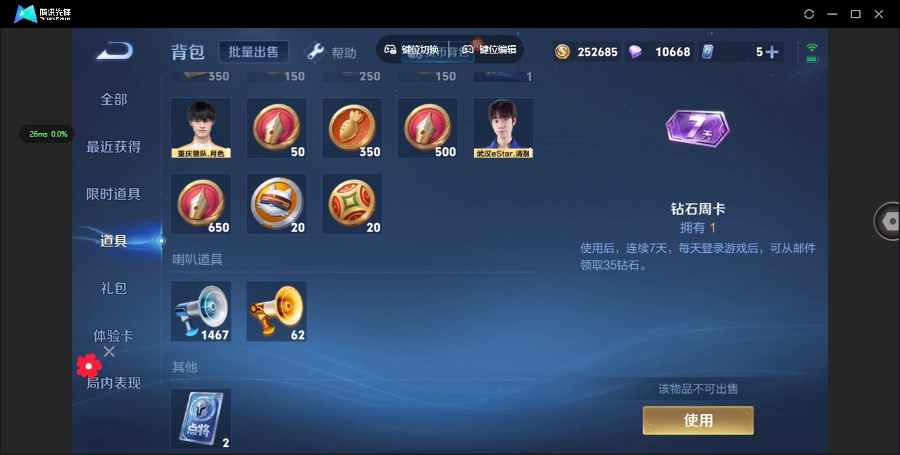 - [12265621]V7 1典藏 8传说 123英雄 267皮肤 可修改实名 优质装备:银白咏叹调(倪克斯侍卫),一念神魔,淬星耀世,超时空战士-狄仁杰,鹤归松栖(云缨) 传说皮:幻光神枪 珍宝阁皮:妄想食味,优雅恋人,女武神 限定皮:鸣野蒿,武陵仙君(小桃花),傲雪梅枪,神威(电光马子),遇见飞天,高山流水,五谷丰年,天狼溯光者,李小龙,玄武志(苏烈年限),默契交锋-花木兰,猪悟能,青春决赛季,匿光追影者,寅虎·赤拳(老虎年限),时之祈愿-云中君,山海·玄木吟(马可年限) 史诗皮:紫霞仙子,电玩小子(小书包),白龙吟,黄金分割率,永昼,江河有灵,百解令(蒙犽),蒙恬荣光圣徽,冰冠公主,晚萤,电玩·爆裂旋风,暗夜猫娘,龙骑士(小龙虾),末日机甲-吕布,猫狗日记-孙策,猫狗日记-大乔,时之恋人-孙尚香,乱世虎臣,节奏热浪,修罗,女仆咖啡,水果甜心,绅士熊喵,天才门将,星夜王子,心灵骇客,功夫厨神,德古拉伯爵,暗隐猎兽者,幽灵船长,鬼剑武藏,心灵战警,地狱岩魂,纤云弄巧,拒霜思,缤纷独角兽,乘风破浪,逐浪之夏,水晶猎龙者,热力回旋,金属风暴,原初追逐者,圣诞狂欢,圣诞恋歌,鹰眼统帅,魅力维加斯,黎明之约,赏金猎手,无心,未来纪元-赵云