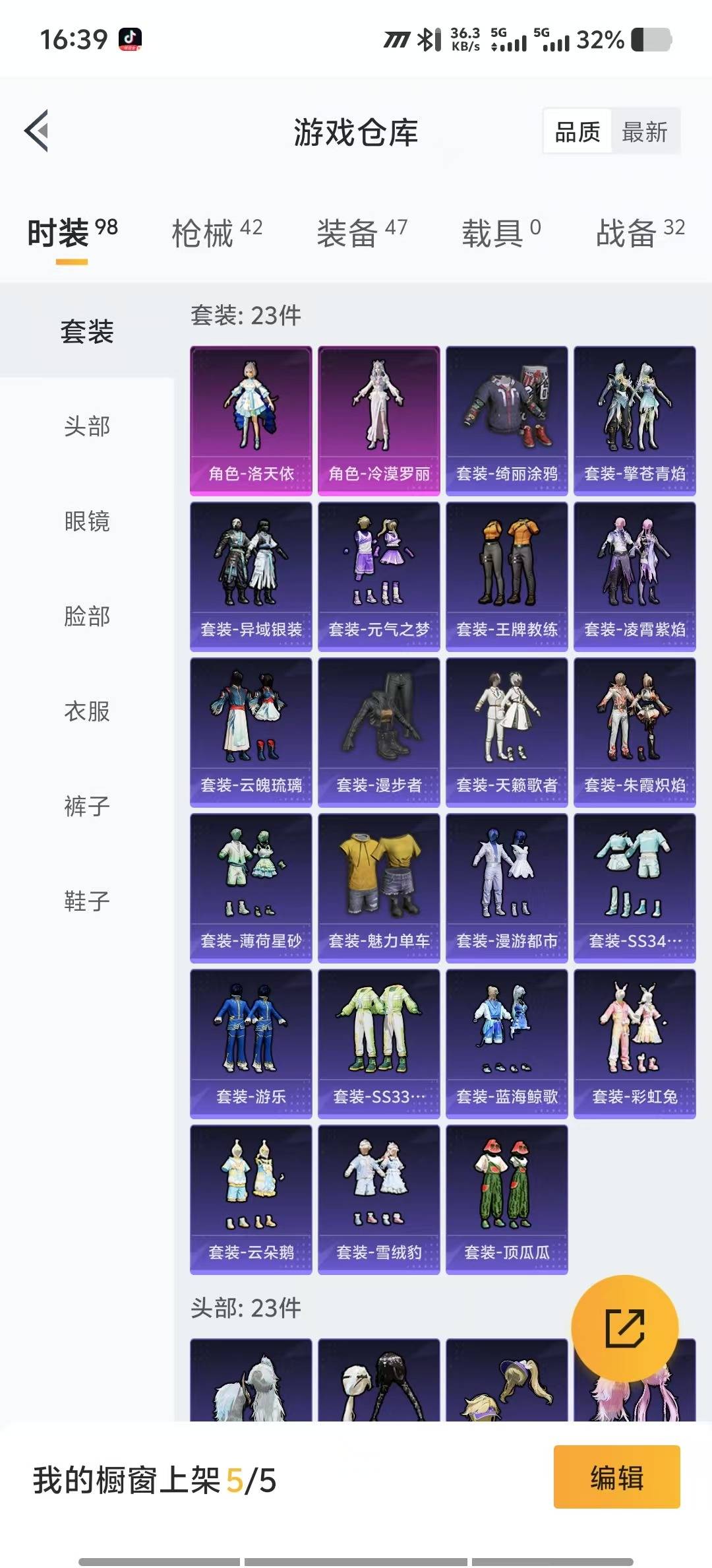 [11794564]2粉装 1特效枪 可二次 可修改实名 优质装备:洛天依,冷漠罗丽 时装数:79 枪械数:40 战备数:0 稀有枪皮:DP-28-豹影疾电 五级特效枪:五级DP-28-豹影疾电 紫色装扮:云朵鹅,彩虹兔,雪绒豹,SS33特训套装,顶瓜瓜,天籁歌者,蓝海鲸歌,魅力单车,绮丽涂鸦,王牌教练,异域银装,漫步者 优质战备:圣堂之誓降落伞,喜羊羊与灰太狼降落伞,洛神天依降落伞1