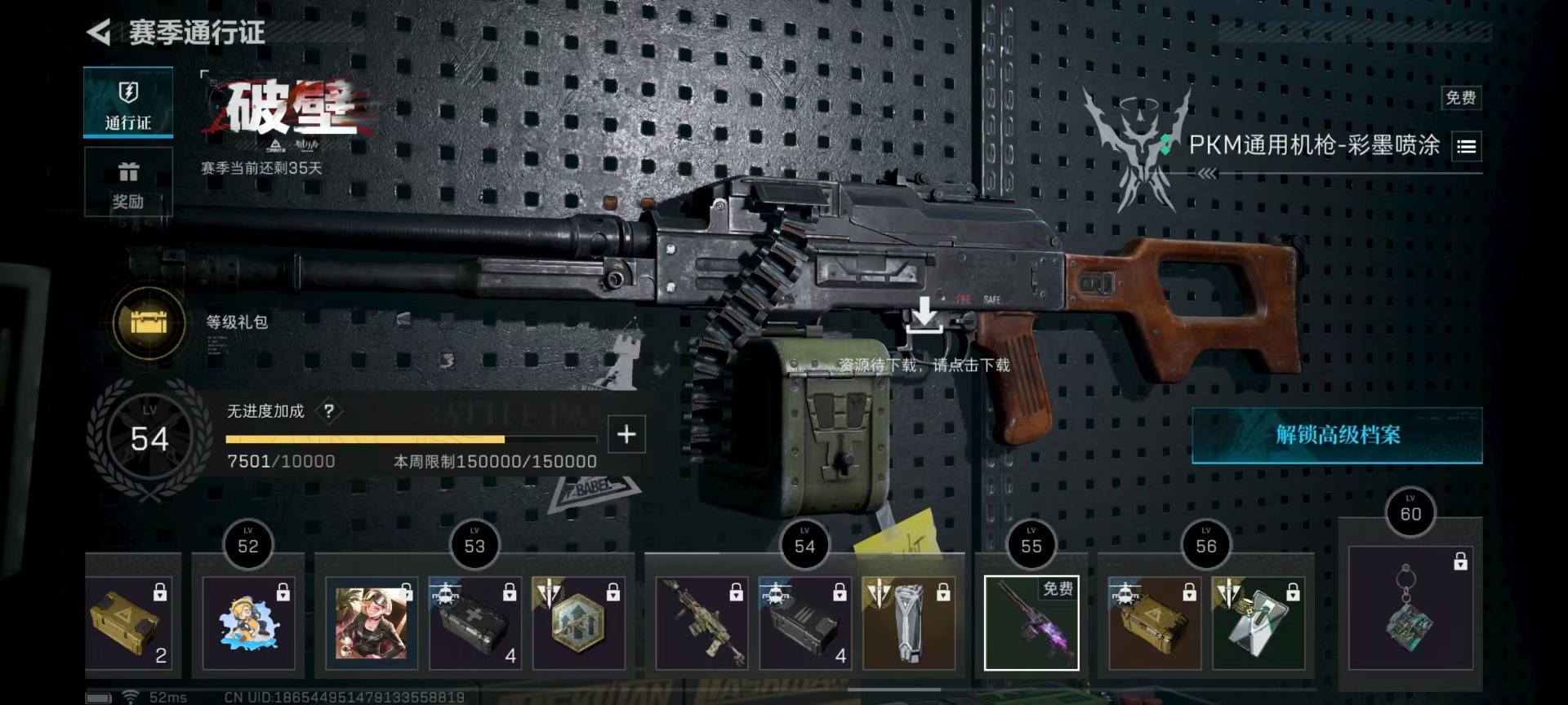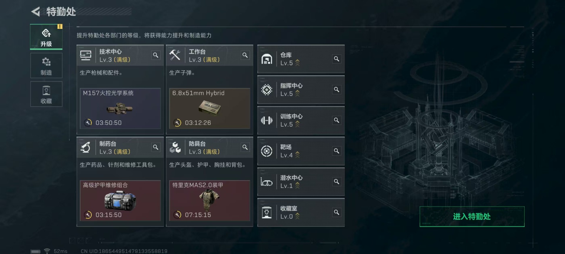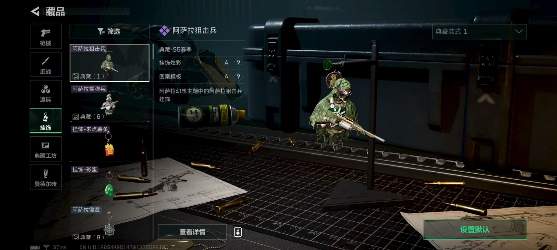 - [11546609]总资产:112.6M 7传说枪械 哈夫币:95.431K 进阶安全箱(2×2)9.15号到期 可二次 可修改实名 烽火地带段位:黑鹰 全面战场段位:无段位 传说武器皮肤:M4A1突击步枪-阿米娅,CAR-15突击步枪-阿米娅,复合弓-黑-天际线,AWM狙击步枪-捞点薯条,腾龙突击步枪-捞点薯条,93R-捞点薯条,勇士冲锋枪-能天使-午夜邮差 史诗武器皮肤:PKM通用机枪-蝮蛇,AKM突击步枪-林中猎手,M16A4突击步枪-竞赛选手,M1014霰弹枪-林中猎手,SV-98狙击步枪-囚徒,SCAR-H战斗步枪-囚徒,QBZ95-1突击步枪-曙光