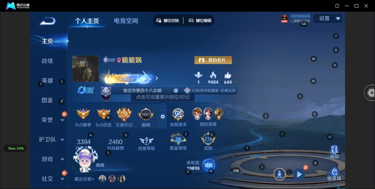 - [12073597]V10 7典藏 34传说 125英雄 419皮肤 可修改实名 女号 优质装备:天鹅之梦(小乔典藏),星空梦想(太空人),鸣剑·曳影,全息碎影(猴子典藏),星域神启(倪克斯贼亮),银白咏叹调(倪克斯侍卫),弑枪猎影(韩信典藏),黄金狮子座,黄金射手座,冠军飞将,云鹰飞将(小将军),绛天战甲(鸡嘴战神),猫影幻舞,久胜战神,炽阳神光,一念神魔,末日机甲-孙尚香(绿蚂蚱),地狱火,仲夏夜之梦(大飞蛾),音你心动-小乔,零号·赤焰,地狱之眼,音你心动-周瑜,胖达荣荣,时之恋人-刘备(电焊工),游龙清影(小青龙),淬星耀世,超时空战士-狄仁杰,遇见胡旋,妄想实况,鲁班七号-时之奇旅,艾琳觅芳踪,涂山容容 传说皮:乘龙·问璇玑(孙尚香年限) 珍宝阁皮:妄想食味,优雅恋人,女武神 限定皮:逐霄战戟,鸣野蒿,至尊宝,太华(伽罗年限),异界灵契(白毛香),傲雪梅枪,寅虎·展翼(孙膑年限),神威(电光马子),飞衡(韩信年限),高山流水,诗剑行,齐天大圣,五谷丰年,冰锋战神,游园惊梦,梁祝,御风骁将(吕布年限),岱宗(典韦年限),天狼溯光者,李小龙,逐梦之影,朱雀志(守约年限),如梦令-后羿,孙行者,猪悟能,一生所爱,大圣娶亲,引擎之心,冰霜恋舞曲,乒乒小将,蜜橘之夏,美猴王,匿光追影者,寅虎·御盾(廉颇年限),寅虎·瑞焰(虎皮蛋子),寅虎·心曲(虎婆),寅虎·赤拳(老虎年限),神器·万象笔 史诗皮:化蝶舞,谪仙醉月,龙之律动,石田雨龙,茶境仙,怒海争锋,破空之剑,战舞者,琥珀纪元伽罗,蔬乡物语(鲁班七号),紫霞仙子,苍穹之光,电玩小子(小书包),白龙吟,黄金分割率,特工魅影,千年之狐,永昼,江河有灵,魅语,百解令(蒙犽),高渐离燃音魔法,无限星赏官,冰冠公主,青蛇,偶像歌手,白蛇,晚萤,电玩·爆裂旋风,暗夜猫娘,龙骑士(小龙虾),末日机甲-吕布,猫狗日记-孙策,猫狗日记-大乔,乱世虎臣,节奏热浪,修罗,女仆咖啡,摇滚巨星,水果甜心,绅士熊喵,天才门将,星夜王子,心灵骇客,时之奇旅-安琪拉,功夫厨神,德古拉伯爵,暗隐猎兽者,幽灵船长,鬼剑武藏,暗渊魔法,心灵战警,乐园奇幻夜,天秀·启明,舞动绿茵,地狱岩魂,诗语江南,纤云弄巧,拒霜思,缤纷独角兽,乘风破浪,逐浪之夏,龙鼓争鸣,月团寄思,水晶猎龙者,曙光守护者,箭羽风息,金属风暴,圣诞狂欢,圣诞恋歌,鹰眼统帅,暗夜贵公子,魅力维加斯,