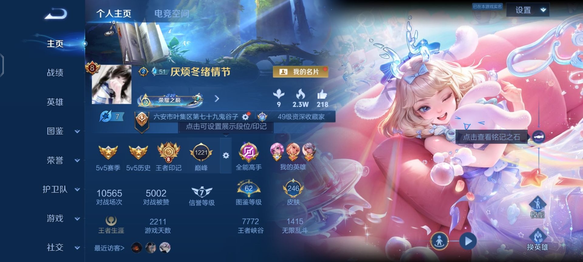 - [11548027]V7 5传说 125英雄 227皮肤 可修改实名 优质装备:久胜战神,鹤羽星尊,惊梅引 传说皮:铠冥王哈迪斯 珍宝阁皮:万物之道,优雅恋人,女武神 限定皮:逐霄战戟,鸣野蒿,至尊宝,遇见飞天,高山流水,五谷丰年,李小龙,朱雀志(守约年限),大圣娶亲 史诗皮:星界战将,谪仙醉月,雪豹·霜爪,藏狐·褐绒,石田雨龙,百相守梦-百里守约,星界特工,百相守梦-黄忠,紫霞仙子,苍穹之光,特工魅影,江河有灵,高渐离燃音魔法,蒙恬荣光圣徽,冰冠公主,偶像歌手,电玩·爆裂旋风,暗夜猫娘,末日机甲-吕布,猫狗日记-孙策,时之恋人-孙尚香,乱世虎臣,节奏热浪,女仆咖啡,摇滚巨星,水果甜心,绅士熊喵,天才门将,星夜王子,功夫厨神,暗隐猎兽者,幽灵船长,鬼剑武藏,心灵战警,乐园奇幻夜,天秀·启明,舞动绿茵,地狱岩魂,纤云弄巧,繁星吟游(呼啦呼啦),缤纷独角兽,乘风破浪,水晶猎龙者,曙光守护者,金属风暴,原初追逐者,圣诞恋歌,鹰眼统帅,魅力维加斯,黎明之约