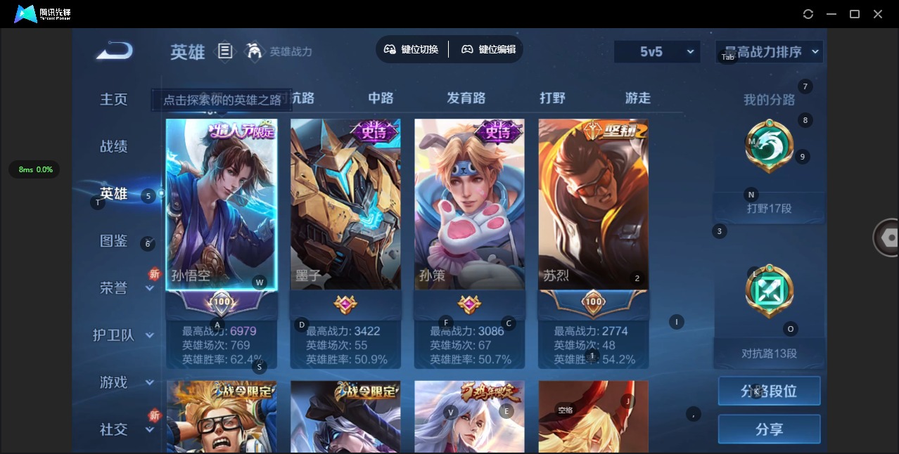 [11866497]V6 1珍品传说 3传说 123英雄 180皮肤 可修改实名 优质装备:黑崎一护,炽阳神光,涂山容容 珍宝阁皮:妄想食味,玩趣恶龙 限定皮:逐霄战戟,鸣野蒿,至尊宝,凤求凰(白切鸡),凤凰于飞,傲雪梅枪,遇见飞天,五谷丰年,游园惊梦,梁祝,李小龙,大圣娶亲 史诗皮:赞萌露比,石田雨龙,东方月初,蒙犽顽岩魄,遇见神鹿,紫霞仙子,特工魅影,千年之狐,江河有灵,暗夜猫娘,猫狗日记-孙策,女仆咖啡,摇滚巨星,水果甜心,天才门将,心灵骇客,幽灵船长,鬼剑武藏,心灵战警,地狱岩魂,纤云弄巧,缤纷独角兽,乘风破浪,逐浪之夏,水晶猎龙者,金属风暴,鹰眼统帅,魅力维加斯,无心,未来纪元-赵云