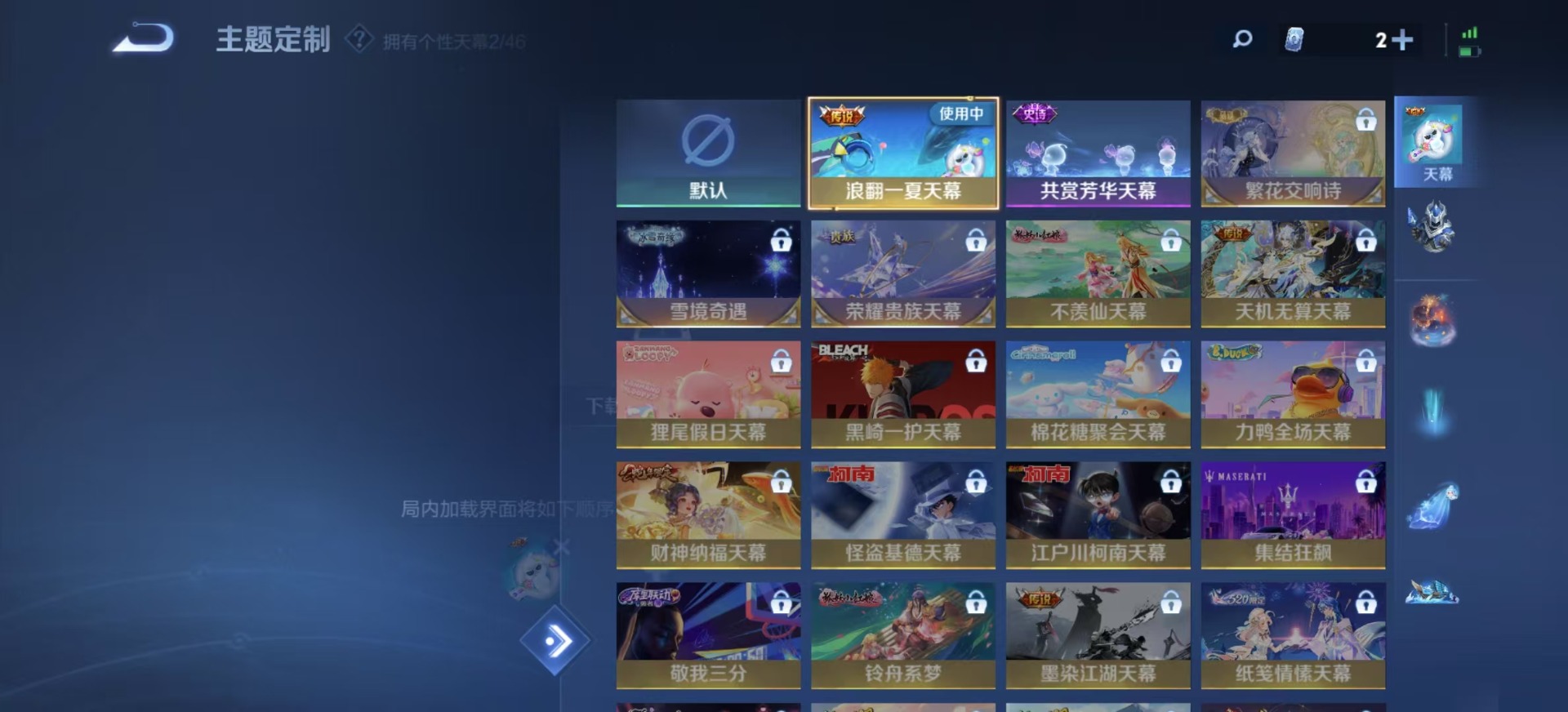 大乔猫狗日记,刘邦德古拉伯爵,夏侯惇乘风破浪,阿轲节奏热浪,不知火舞魅语,吕布圣诞狂欢,露娜紫霞仙子,诸葛亮黄金分割率,刘禅电玩·爆裂旋风,刘禅天才门将,刘禅绅士熊喵,宫本武藏鬼剑武藏,兰陵王暗隐猎兽者,花木兰水晶猎龙者,李白千年之狐,上官婉儿群星魔术团,安琪拉心灵骇客,白起星夜王子,亚瑟心灵战警,嬴政摇滚巨星,嬴政暗夜贵公子,百里玄策原初追逐者,雅典娜冰冠公主,雅典娜黎明之约,韩信白龙吟,百里守约特工魅影,墨子金属风暴,蔡文姬舞动绿茵,弈星滕王阁序,嫦娥拒霜思