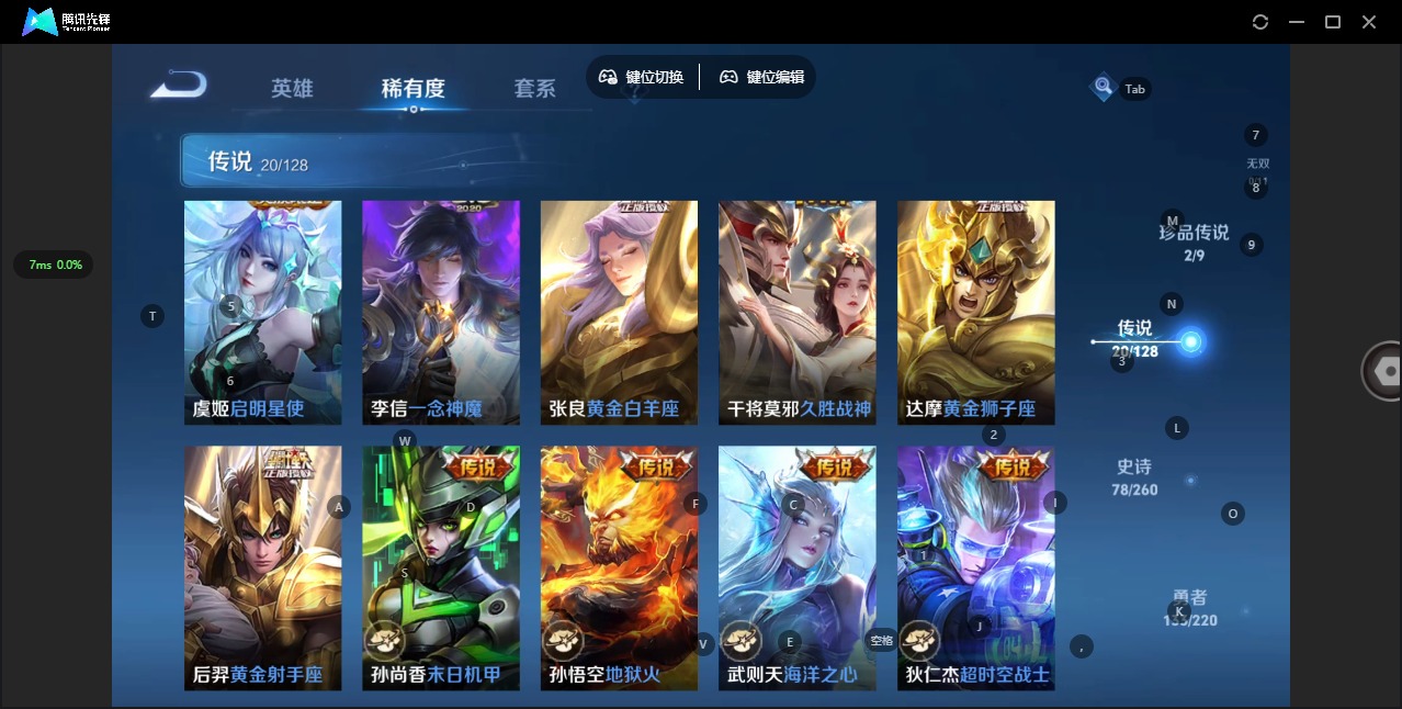 - [10194273]V7 1典藏 1传说 123英雄 193皮肤 可修改实名 荣耀水晶:杀手不太冷 珍宝阁皮:女武神,玩趣恶龙 限定皮:神威(电光马子),遇见飞天,五谷丰年,梁祝,逐梦之星,祈雪灵祝(雪兔子),天狼绘梦者,李小龙,默契交锋-花木兰 史诗皮:苍穹之光,白龙吟,黄金分割率,千年之狐,暗夜猫娘,龙骑士(小龙虾),偶像歌手,冰冠公主,猫狗日记-孙策,时之恋人-孙尚香,乱世虎臣,女仆咖啡,摇滚巨星,水果甜心,天才门将,星夜王子,功夫厨神,德古拉伯爵,暗隐猎兽者,幽灵船长,鬼剑武藏,心灵战警,舞动绿茵,地狱岩魂,缤纷独角兽,逐浪之夏,曙光守护者,金属风暴,原初追逐者,圣诞狂欢,鹰眼统帅,魅力维加斯,黎明之约,未来纪元-赵云