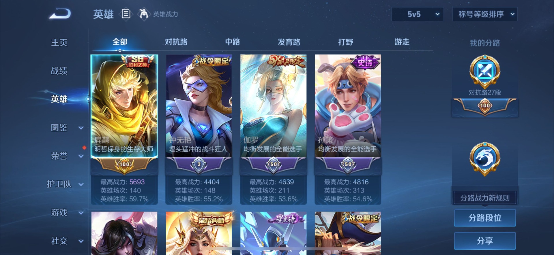 - PX_2053869-安卓Q 【可二次】 英雄数量:124 皮肤数量:301 贵族等级:贵族V8 荣耀典藏3 珍品传说1 传说品质16 史诗品质79九霄神辉 无限飓风号 弑枪猎影 时之奇旅孙策 乞巧织情 仲夏夜之梦 猫影幻舞 云霓雀翎 淬星耀世 齐天大圣 炽阳神光 炽翼辉光 音你心动男 绛天战甲 启明星使 黄金射手座 地狱之眼 时之恋人男 胖达荣荣 鸣野蒿 至尊宝 神威 冰锋战神 天才门将 游园惊