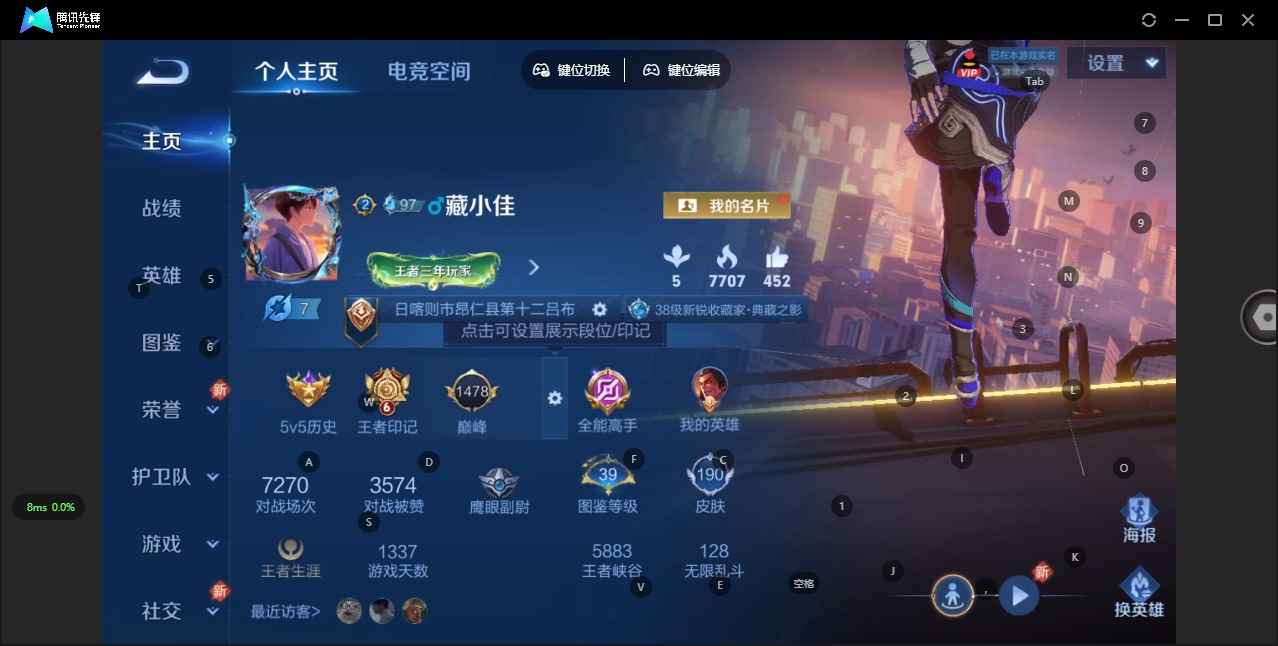 - [11349089]V8 1典藏 21传说 124英雄 312皮肤 可修改实名 优质装备:无限飓风号(高达),黄金狮子座,黄金射手座,云鹰飞将(小将军),绛天战甲(鸡嘴战神),黄金白羊座,猫影幻舞,久胜战神,炽阳神光,一念神魔,地狱之眼,李逍遥,淬星耀世,超时空战士-狄仁杰,电玩·雷克斯,惊梅引 传说皮:乘龙·淬吴钩(孙策年限) 珍宝阁皮:优雅恋人,蔷薇恋人,玩趣恶龙 限定皮:愿照·山河定(司空震年限),鸣野蒿,遇见飞天,高山流水,诗剑行,五谷丰年,武圣,逐梦之星,天狼绘梦者,李小龙,逐梦之影,猪悟能,云端筑梦师 史诗皮:化蝶舞,星界战将,龙之律动,茶境仙,破空之剑,战舞者,琥珀纪元伽罗,蔬乡物语(鲁班七号),百相守梦-百里守约,百相守梦-黄忠,紫霞仙子,苍穹之光,黄金分割率,特工魅影,永昼,江河有灵,末日机甲-莱西奥,鹤归松栖(赵怀真),魅语,百解令(蒙犽),高渐离燃音魔法,蒙恬荣光圣徽,冰冠公主,青蛇,偶像歌手,电玩·爆裂旋风,百相守梦(刘备),末日机甲-吕布,猫狗日记-孙策,猫狗日记-大乔,乱世虎臣,节奏热浪,修罗,女仆咖啡,摇滚巨星,水果甜心,绅士熊喵,星夜王子,心灵骇客,功夫厨神,德古拉伯爵,暗隐猎兽者,幽灵船长,鬼剑武藏,暗渊魔法,心灵战警,乐园奇幻夜,天秀·启明,舞动绿茵,地狱岩魂,纤云弄巧,繁星吟游(呼啦呼啦),缤纷独角兽,乘风破浪,逐浪之夏,月团寄思,水晶猎龙者,曙光守护者,金属风暴,原初追逐者,圣诞狂欢,鹰眼统帅,魅力维加斯,黎明之约,雪上飞焰,滕王阁序,无心,未来纪元-赵云