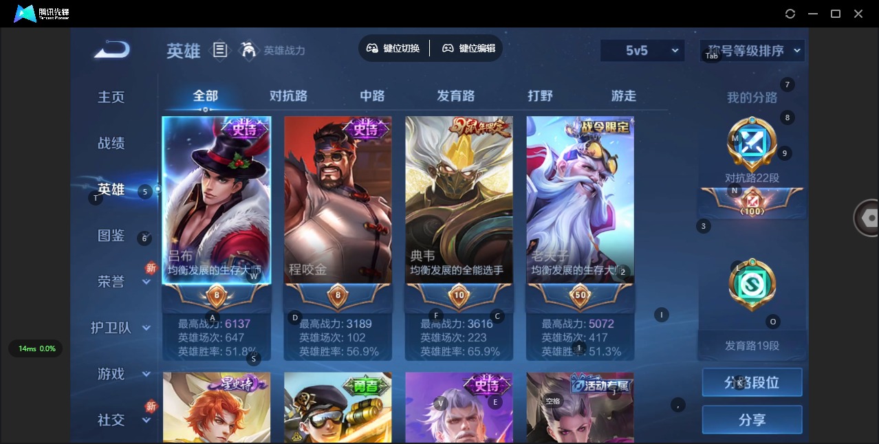 - [12085762]V8 1典藏 1珍品传说 10传说 126英雄 308皮肤 典藏英雄武则天 可修改实名 优质装备:倪克斯神谕(宇宙婆娘),怪盗基德,炽阳神光,地狱火,仲夏夜之梦(大飞蛾),地狱之眼 传说皮:吕布曦玄引,幻光神枪 珍宝阁皮:妄想食味,优雅恋人 限定皮:愿照·九州拓(澜年限),鸣野蒿,至尊宝,凤求凰(白切鸡),凤凰于飞,飞衡(韩信年限),遇见飞天,游园惊梦,梁祝,御风骁将(吕布年限),李小龙,辉光之辰,霸王别姬-项羽,霸王别姬-虞姬,默契交锋-花木兰,孙行者,梦圆繁星 史诗皮:鸭鸭历险记-刘禅,器灵·浮梦炉,化蝶舞,星界战将,灵蛊蚀心,龙之律动,破空之剑,战舞者,遇见神鹿,紫霞仙子,电玩小子(小书包),白龙吟,黄金分割率,特工魅影,千年之狐,江河有灵,百解令(蒙犽),偶像歌手,龙骑士(小龙虾),魅语,冰冠公主,末日机甲-吕布,乱世虎臣,节奏热浪,女仆咖啡,摇滚巨星,水果甜心,绅士熊喵,天才门将,星夜王子,德古拉伯爵,暗隐猎兽者,幽灵船长,鬼剑武藏,心灵战警,乐园奇幻夜,舞动绿茵,地狱岩魂,纤云弄巧,繁星吟游(呼啦呼啦),缤纷独角兽,乘风破浪,逐浪之夏,水晶猎龙者,箭羽风息,金属风暴,原初追逐者,圣诞狂欢,圣诞恋歌,鹰眼统帅,王者之锤,魅力维加斯,黎明之约,未来纪元-赵云