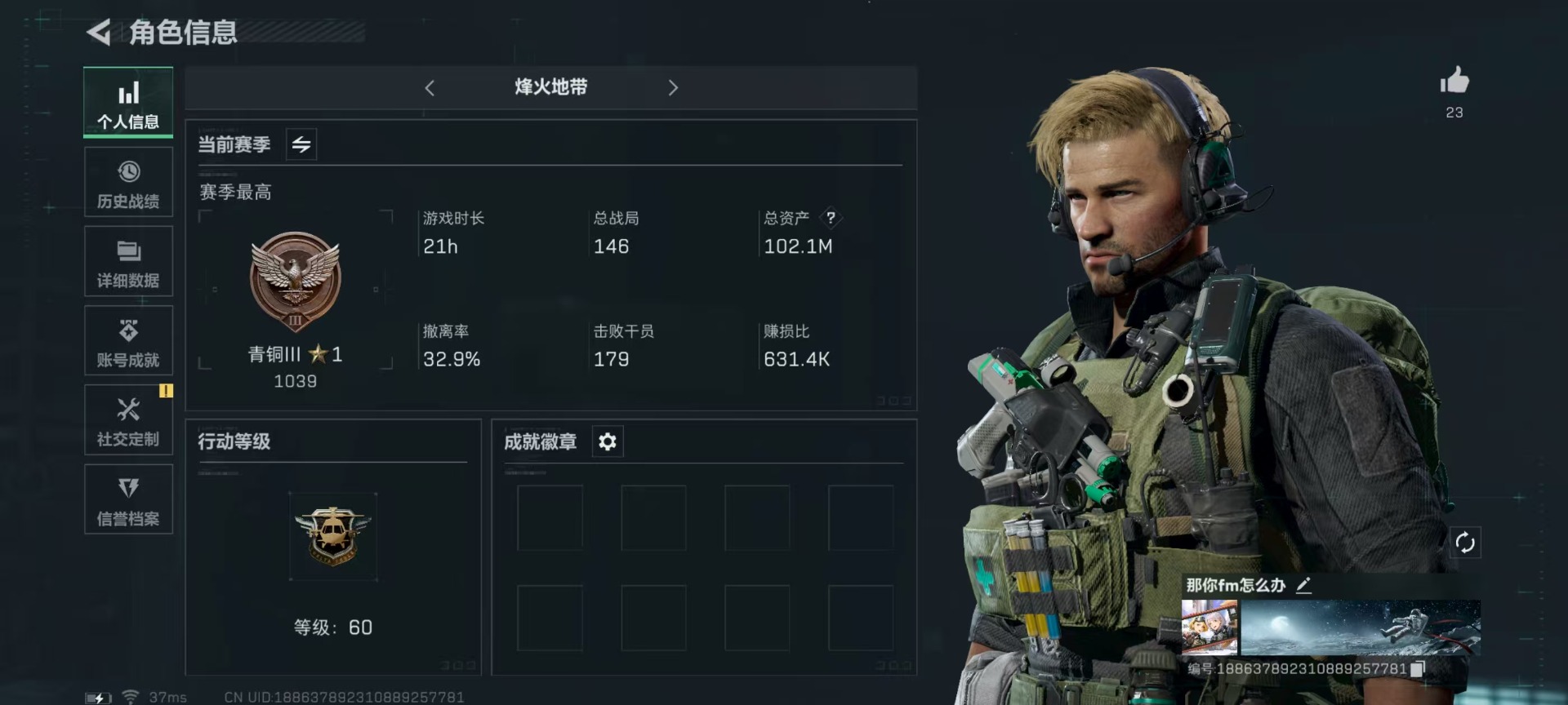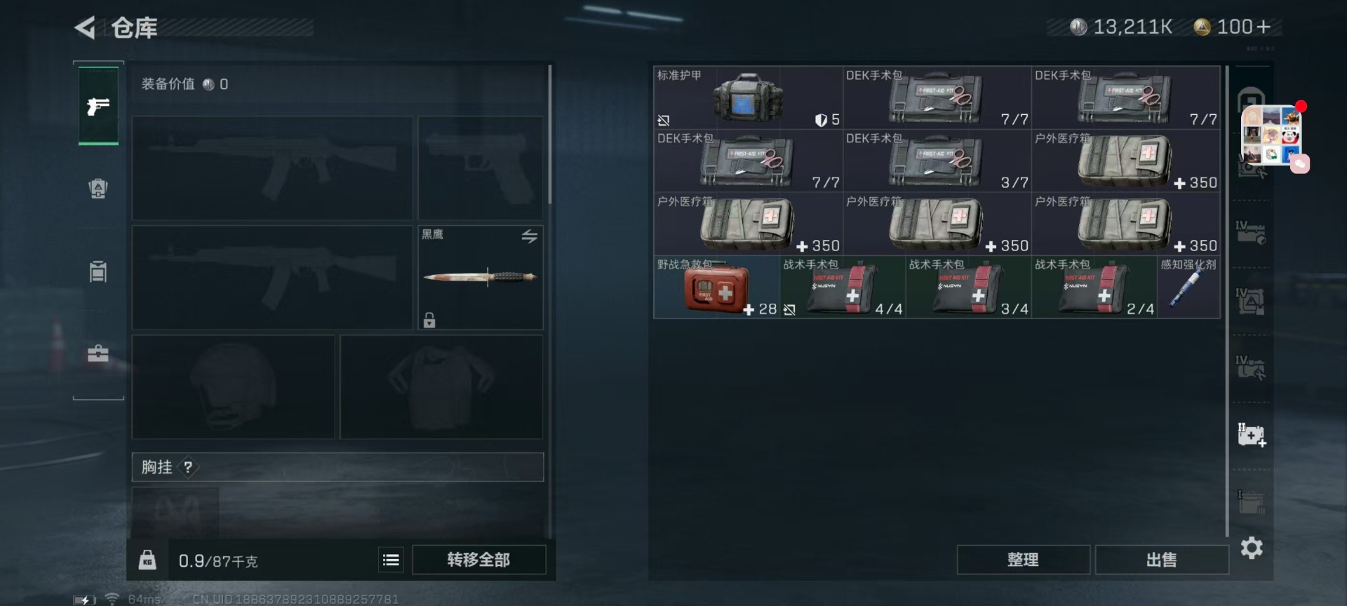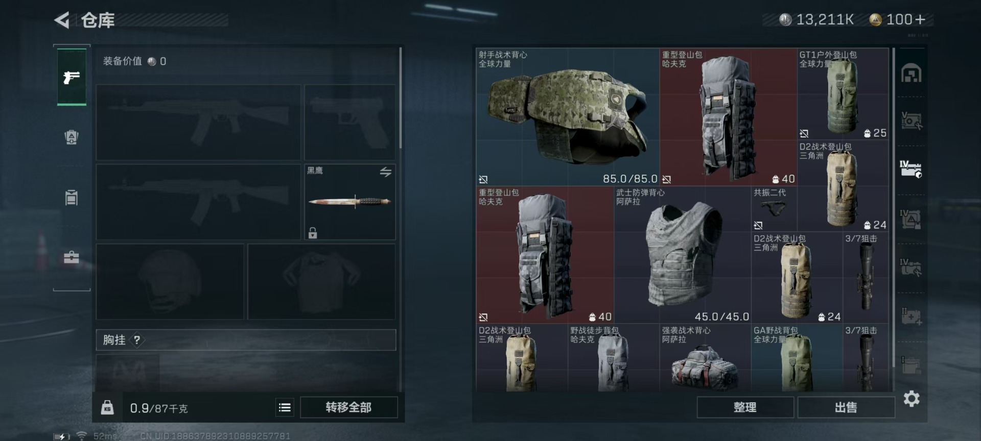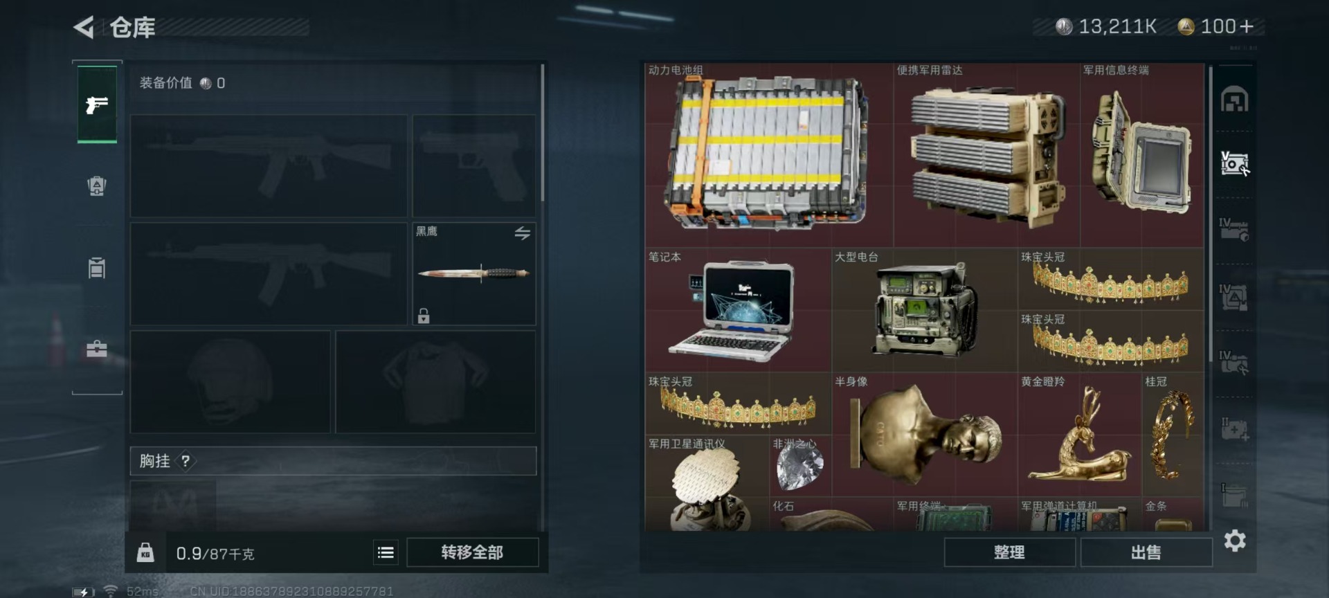 [11567789]总资产:102.1M 4传说枪械 哈夫币:13.211K 可二次 可修改实名 烽火地带段位:青铜 全面战场段位:列兵 传说武器皮肤:勇士冲锋枪-能天使-午夜邮差,725双管霰弹枪-送葬人-无题密令,M4A1突击步枪-阿米娅,复合弓-黑-天际线