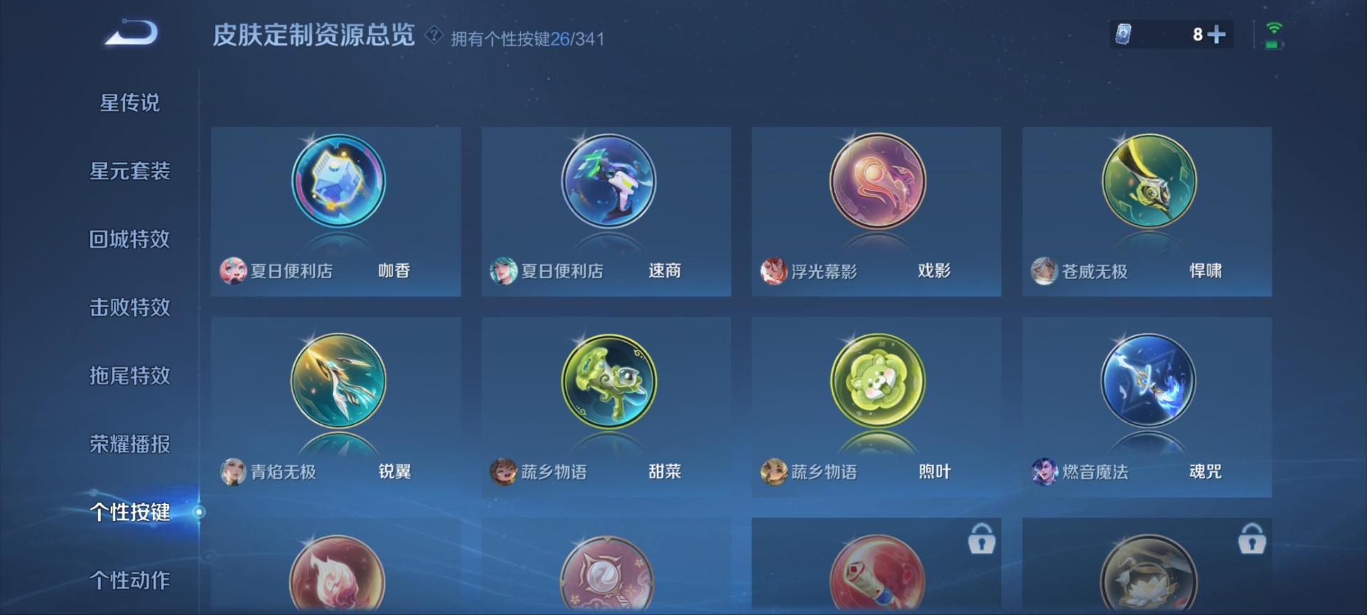 铠绛天战甲,刘备时之恋人,铠冥王哈迪斯,张飞百相守梦,赵云淬星耀世,干将莫邪久胜战神,小乔音你心动,李信一念神魔,孙策乘龙·淬吴钩,达摩黄金狮子座,王昭君乞巧织情,庄周牧神诗旅,镜炽阳神光,周瑜音你心动,裴擒虎祥瑞亨通,貂蝉猫影幻舞,夏洛特浮生妄,艾琳觅芳踪,西施游龙清影,张良黄金白羊座,曜云鹰飞将,百里守约碎云,李元芳飞鸢探春,虞姬云霓雀翎,云缨幻光神枪