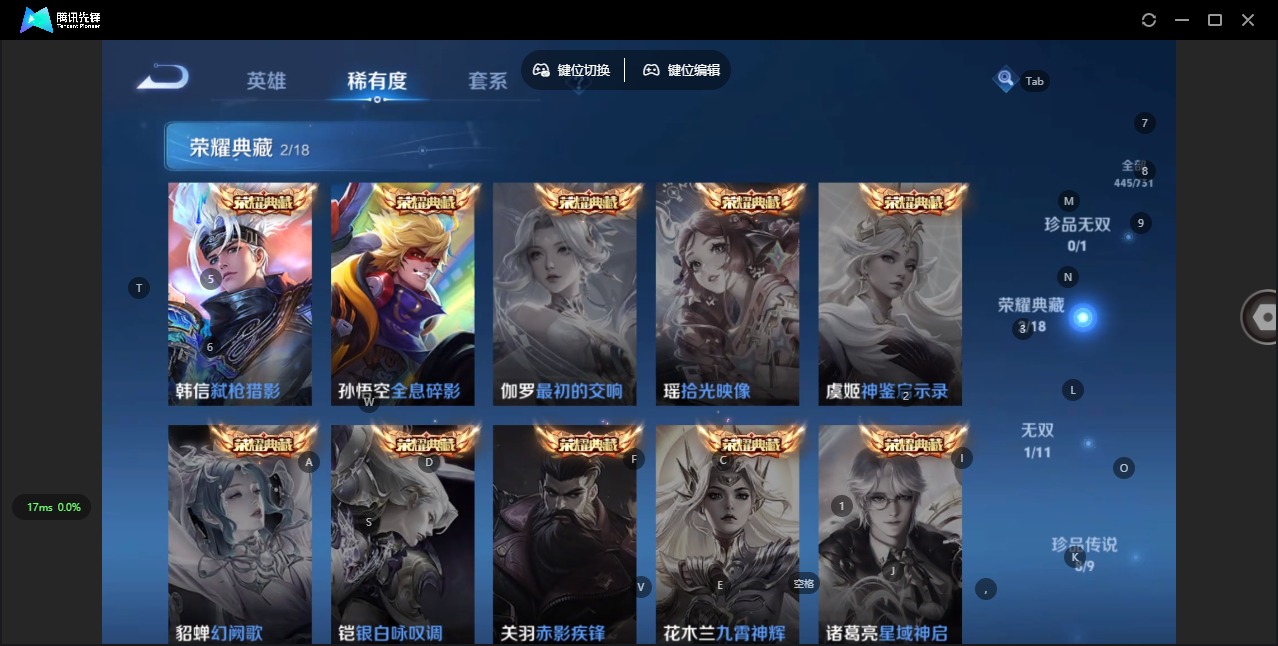 - PX_2095372-89 苹果QQ/至尊星耀/301皮肤/125英雄/1典藏/0珍品无双/1无双/4珍品传说/22传说/84史诗/9稀有英雄 【4 珍品传说】大耳狗之梦 瑶,朽木白哉 暃,黑崎一护 宫本武藏,器灵·落星盏 嫦娥, 【1 典藏皮肤】鸣剑·曳影 李白, 【1 无双皮肤】器灵·螭龙剑 曜, 【22 传说皮肤】启明星使 虞姬,无双飞将 马超,白虎志 百里玄策,李逍遥 曜,云鹰飞将 曜,