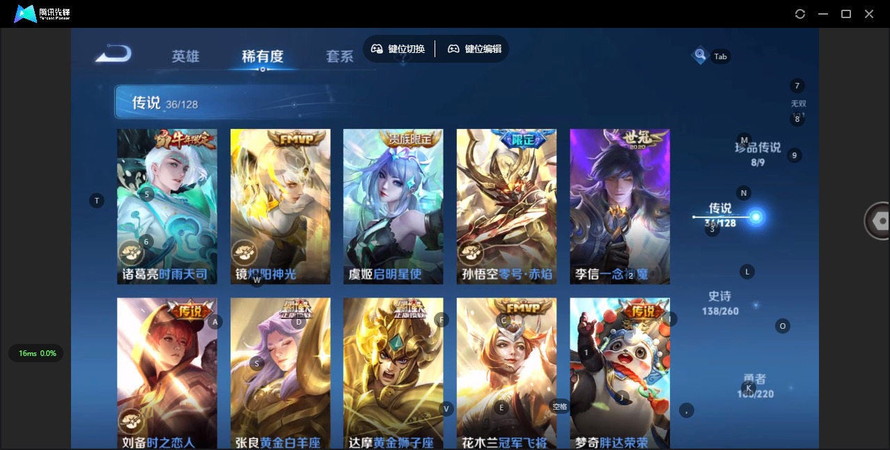 - [12265293]V8 1典藏 24传说 124英雄 331皮肤 可修改实名 优质装备:九霄神辉(木兰典藏),云鹰飞将(小将军),猫影幻舞,一念神魔,地狱之眼,音你心动-周瑜,神器·狴犴令,山海·炽霜斩(李信年限),山海·苍雷引(电光曜子),涂山容容 珍宝阁皮:蔷薇恋人,女武神,玩趣恶龙 限定皮:鸣野蒿,至尊宝,凤求凰(白切鸡),武陵仙君(小桃花),异界灵契(白毛香),傲雪梅枪,前尘镜,星穹之声,绯月行,飞衡(韩信年限),遇见飞天,高山流水,诗剑行,齐天大圣,怒海麟威,降魔,五谷丰年,游园惊梦,梁祝,御风骁将(吕布年限),天狼狩猎者,龙胆,岱宗(典韦年限),天狼溯光者,李小龙,如梦令-后羿,默契交锋-兰陵王,默契交锋-花木兰,孙行者,乒乒小将,寅虎·赤拳(老虎年限),时之祈愿-云中君,时之祈愿-瑶(瑶传限),深海之息(深海大菠萝),枫霜尽,时之奇旅-妲己 史诗皮:化蝶舞,雪豹·霜爪,石田雨龙,百相守梦-黄忠,紫霞仙子,苍穹之光,电玩小子(小书包),白龙吟,黄金分割率,特工魅影,千年之狐,江河有灵,冰冠公主,暗夜猫娘,末日机甲-吕布,猫狗日记-孙策,猫狗日记-大乔,乱世虎臣,节奏热浪,女仆咖啡,摇滚巨星,水果甜心,绅士熊喵,天才门将,星夜王子,心灵骇客,功夫厨神,德古拉伯爵,暗隐猎兽者,幽灵船长,鬼剑武藏,心灵战警,舞动绿茵,地狱岩魂,繁星吟游(呼啦呼啦),缤纷独角兽,乘风破浪,逐浪之夏,水晶猎龙者,曙光守护者,箭羽风息,唤灵魅影,金属风暴,圣诞狂欢,圣诞恋歌,鹰眼统帅,暗夜贵公子,魅力维加斯,赏金猎手,无心,未来纪元-赵云
