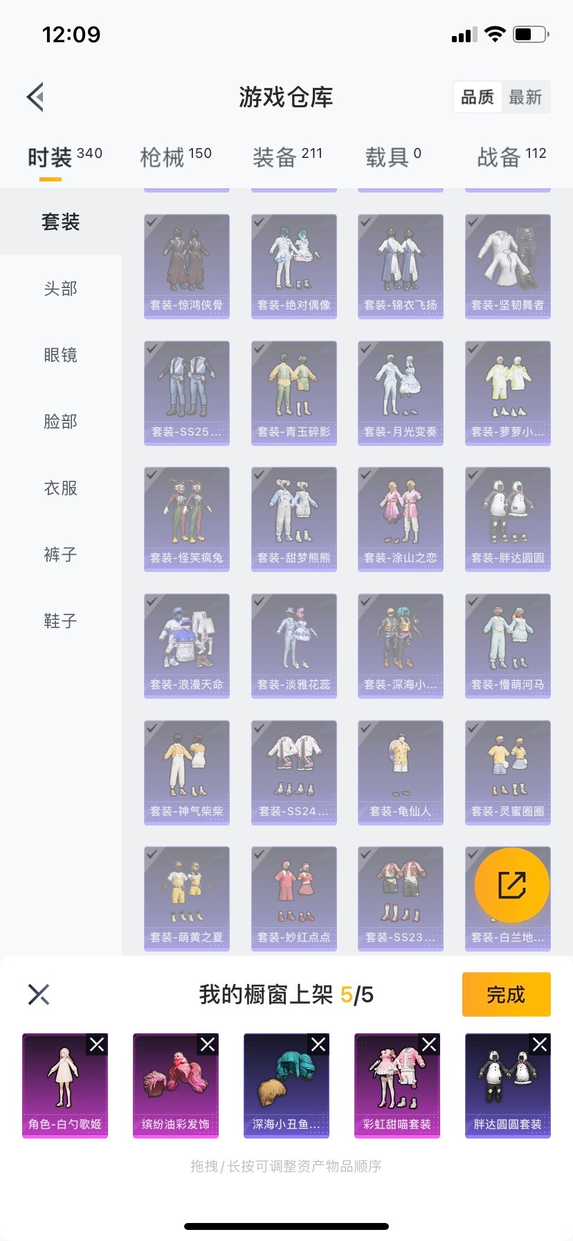 套装-深海小丑鱼,套装-胖达圆圆,套装-金风玉露,套装-潮萌小黄鸭,套装-缤纷油彩,套装-彩虹甜喵,角色-小可学妹,角色-呆萌星弥,角色-白勺歌姬,角色-小蓝,套装-雪月幻音,套装-第五大道,套装-冰川幽秘