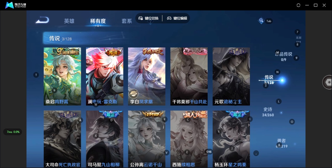 - [11834079]V7 1典藏 1珍品传说 15传说 123英雄 269皮肤 可修改实名 优质装备:全息碎影(猴子典藏),怪盗基德,黄金狮子座,黄金射手座,久胜战神,炽阳神光,一念神魔,时之恋人-刘备(电焊工),淬星耀世,超时空战士-狄仁杰,音你闪耀(rap皮),澜逐花归海,千山共赴,涂山容容 传说皮:祥瑞亨通 珍宝阁皮:胡桃夹子,万物之道 限定皮:愿照·岁时盈(虞姬年限),逐霄战戟,鸣野蒿,至尊宝,凤求凰(白切鸡),傲雪梅枪,五谷丰年,李小龙,孙行者,引擎之心 史诗皮:星界战将,龙之律动,茶境仙,怒海争锋,破空之剑,蔬乡物语(鲁班七号),百相守梦-百里守约,星界特工,百相守梦-黄忠,织梦人,紫霞仙子,苍穹之光,黄金分割率,特工魅影,千年之狐,江河有灵,高渐离燃音魔法,蒙恬荣光圣徽,冰冠公主,青蛇,电玩·爆裂旋风,百相守梦(刘备),猫狗日记-孙策,乱世虎臣,节奏热浪,修罗,水果甜心,天才门将,星夜王子,心灵骇客,德古拉伯爵,暗隐猎兽者,幽灵船长,鬼剑武藏,暗渊魔法,天秀·启明,地狱岩魂,缤纷独角兽,乘风破浪,逐浪之夏,水晶猎龙者,曙光守护者,箭羽风息,金属风暴,原初追逐者,圣诞狂欢,圣诞恋歌,鹰眼统帅,魅力维加斯,黎明之约,未来纪元-赵云