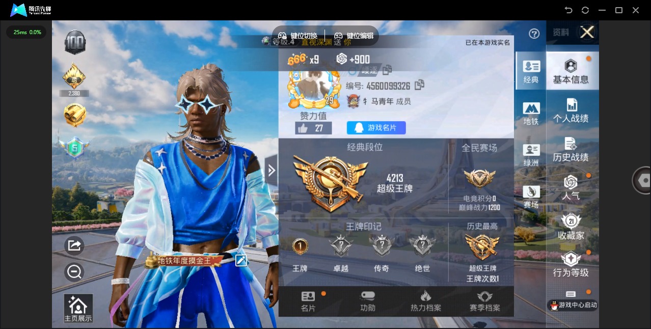 - [12085399]可二次 可修改实名 排位资格:有 :1传说武器 11V武器 5皮肤 可排位 枪王 武器:擎天,传说辉光,白虎-电玩蓝兔,死神-雪域霜狐,机械迷城-穹宇,AK-47-猩红传说,屠龙,Barrett-毁灭,M4A1-雷神,M200-幻神