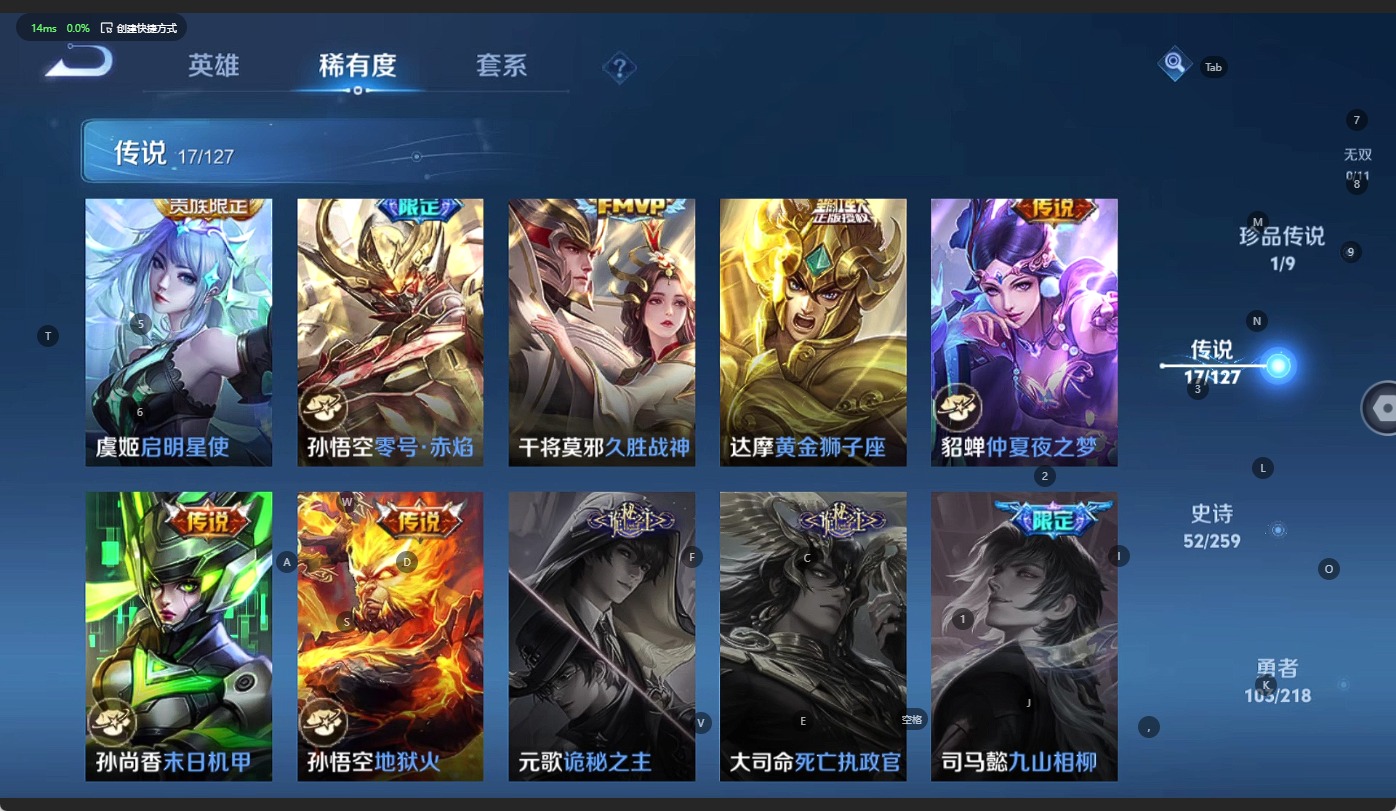 - [11527897]V5 1典藏 3传说 121英雄 124皮肤 可修改实名 优质装备:大秦宣太后 传说皮:幻光神枪 珍宝阁皮:优雅恋人 限定皮:鸣野蒿,武圣,梁祝 史诗皮:化蝶舞,怒海争锋,破空之剑,蒙犽顽岩魄,埋骨钱,星界特工,黄金分割率,特工魅影,江河有灵,电玩·爆裂旋风,猫狗日记-孙策,猫狗日记-大乔,乱世虎臣,节奏热浪,修罗,水果甜心,星夜王子,暗隐猎兽者,幽灵船长,鬼剑武藏,暗渊魔法,心灵战警,地狱岩魂,乘风破浪,逐浪之夏,水晶猎龙者,热力回旋,箭羽风息,金属风暴,原初追逐者,圣诞狂欢,鹰眼统帅,魅力维加斯
