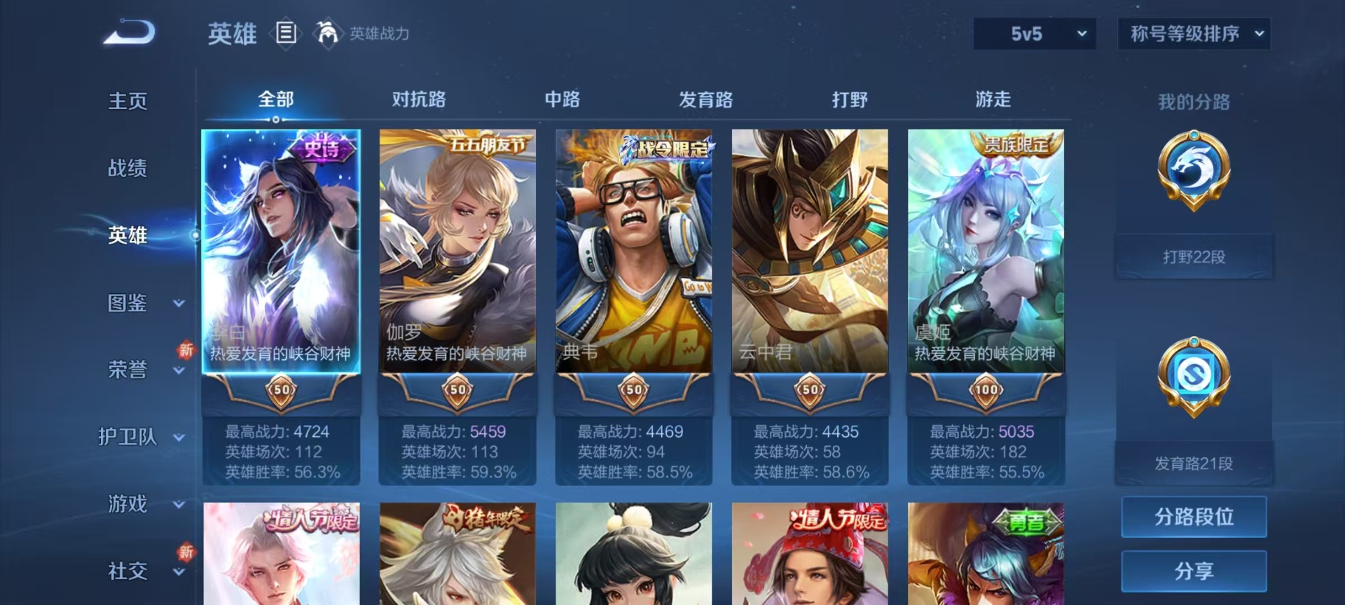 - PX_2104490-实名: 可修改 贵族等级: V4 英雄数: 97 皮肤数: 82 珍品传说: 大耳狗之梦 星传说: 未来机甲 传说皮: 末日机甲-孙尚香,音你心动-小乔 限定皮: 至美·乘鲤谣,鸣野蒿