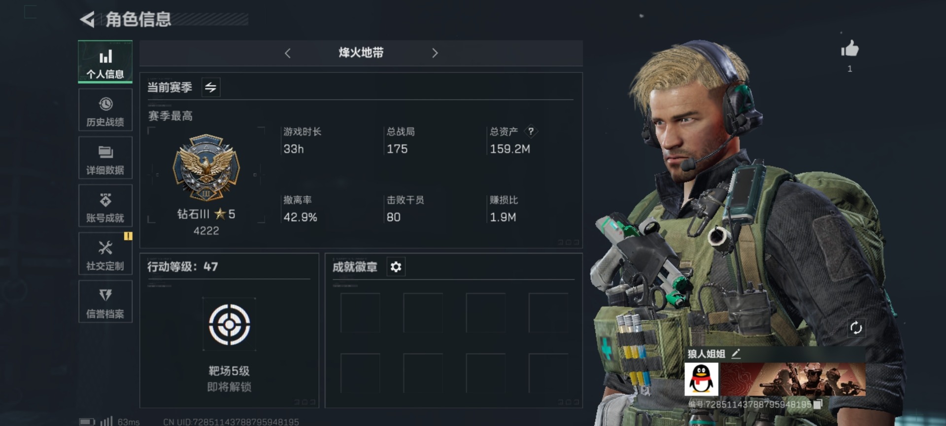 [11876708]总资产:159.2M 5传说枪械 哈夫币:70.695K 可二次 可修改实名 烽火地带段位:钻石 全面战场段位:无段位 传说武器皮肤:AWM狙击步枪-捞点薯条,腾龙突击步枪-捞点薯条,93R-捞点薯条,勇士冲锋枪-能天使-午夜邮差,Vector冲锋枪-能天使-午夜邮差 史诗武器皮肤:M16A4突击步枪-竞赛选手,SV-98狙击步枪-林中猎手,Vector冲锋枪-阿萨拉文明,SVD狙击步枪-阿萨拉工艺