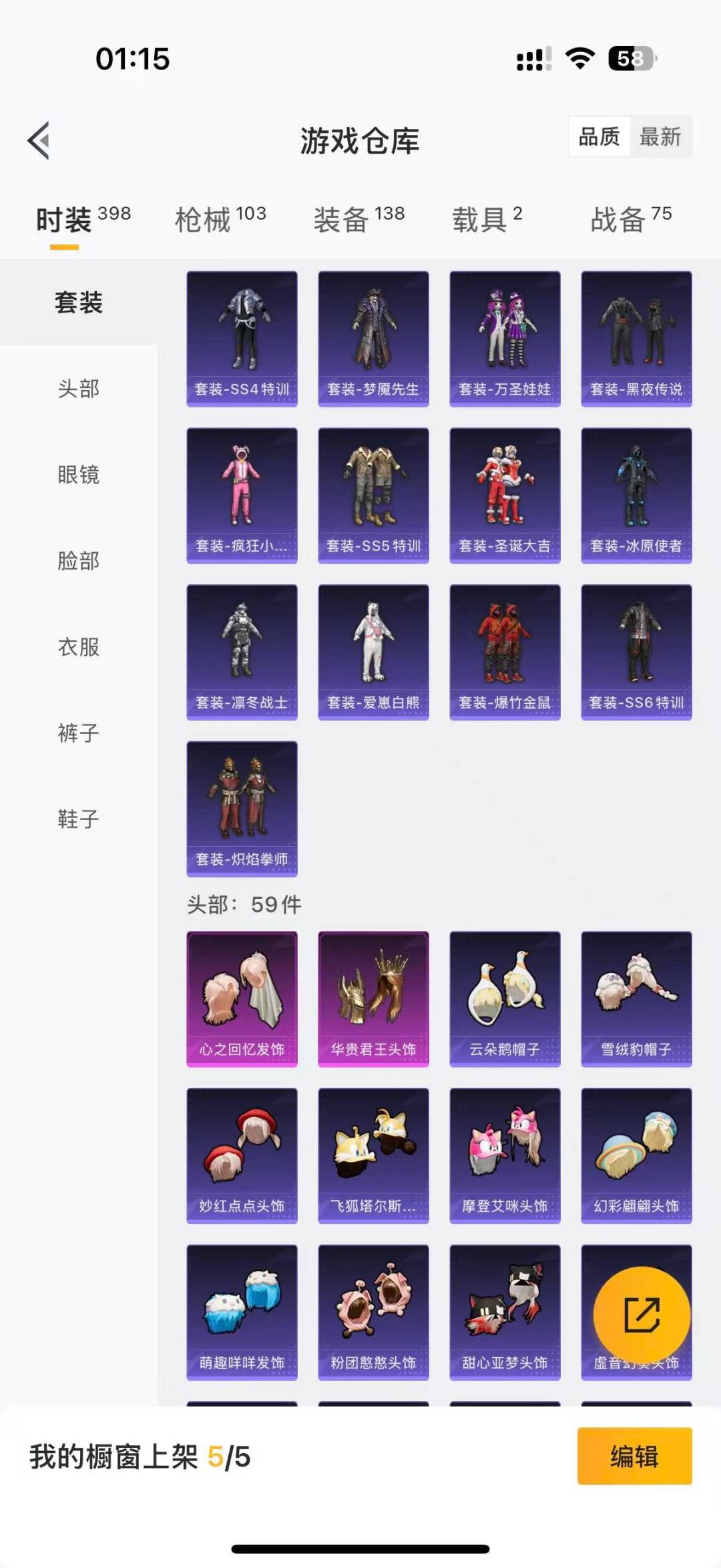 [11876760]1红装 4粉装 2特效枪 2载具 1印记 可二次 可修改实名 连体王者 安全保护中 优质装备:最终圣卫者-帕修斯,二级最终圣卫者-帕修斯,最终圣卫者摩托车,玛莎拉蒂Quattroporte(夜幕蓝),华贵君王,SCAR-L纯梦嫁纱,Vector-最终圣卫者,冷漠罗丽 热门装扮:复仇流浪者,心之回忆,鹰眼刺客,万圣娃娃,梦魇先生,爱崽白熊 四级特效枪:四级SCAR-L-纯梦嫁纱 三级特效枪:三级Vector-最终圣卫者 紫色装扮:飞狐塔尔斯,SS23特训,幻彩翩翩,妙红点点,摩登艾咪,萌趣咩咩,SS21特训,SS3特训,SS4特训,SS5特训,冰原使者,,凛冬战士,北国孤狼,千禧之恋,云朵鹅,雪绒豹,SS33特训套装,时希公主,灵公主,SS20特训,艾克斯奥特曼,军刀雅典娜,英勇保护者,粉团憨憨,香草威化,甜心亚梦,虚音幻奏,酷潮明星,长空猛禽,雪山征服者,雪山精英,霓虹街区,迎春赐吉,蓝彩潮人,蓝色运动,西部风情,跃动心情,龙腾端午,魅力单车,黄色运动,熔岩游骑兵连帽夹克,极速红龙,深蓝色名流,圣诞大吉,坚韧舞者,夜莺强袭者,幻世战舞者,怒火燎原,战地菁英,疯狂小兔子,破蛋小黄鸡,甜蜜告白,竞技勇士朋克,红色运动,潮流先锋,灰色格斗者,燃烧卡路里,牛气满满,竞技名士,情公主,精神漫游,炽焰拳师,格斗专家,SS6特训,银河圣歌,闪耀星光,核芯基因,SS7特训,金环蜂王,黑夜传说,星光纪元,玲珑飞花,SS8特训,薄荷蓝莓,SS32特训服(SS32特训套装),冰冻风暴,弄潮海豚,冷血极客,丛林猎人,传奇侦探,特种空勤,爆竹金鼠 优质战备:精灵梦叶罗丽降落伞,最终圣卫者降落伞,终晖之翼飞行器,临安公主降落伞,环太平洋降落伞,音爆索尼克降落伞,银河战甲降落伞,阿狸红降落伞