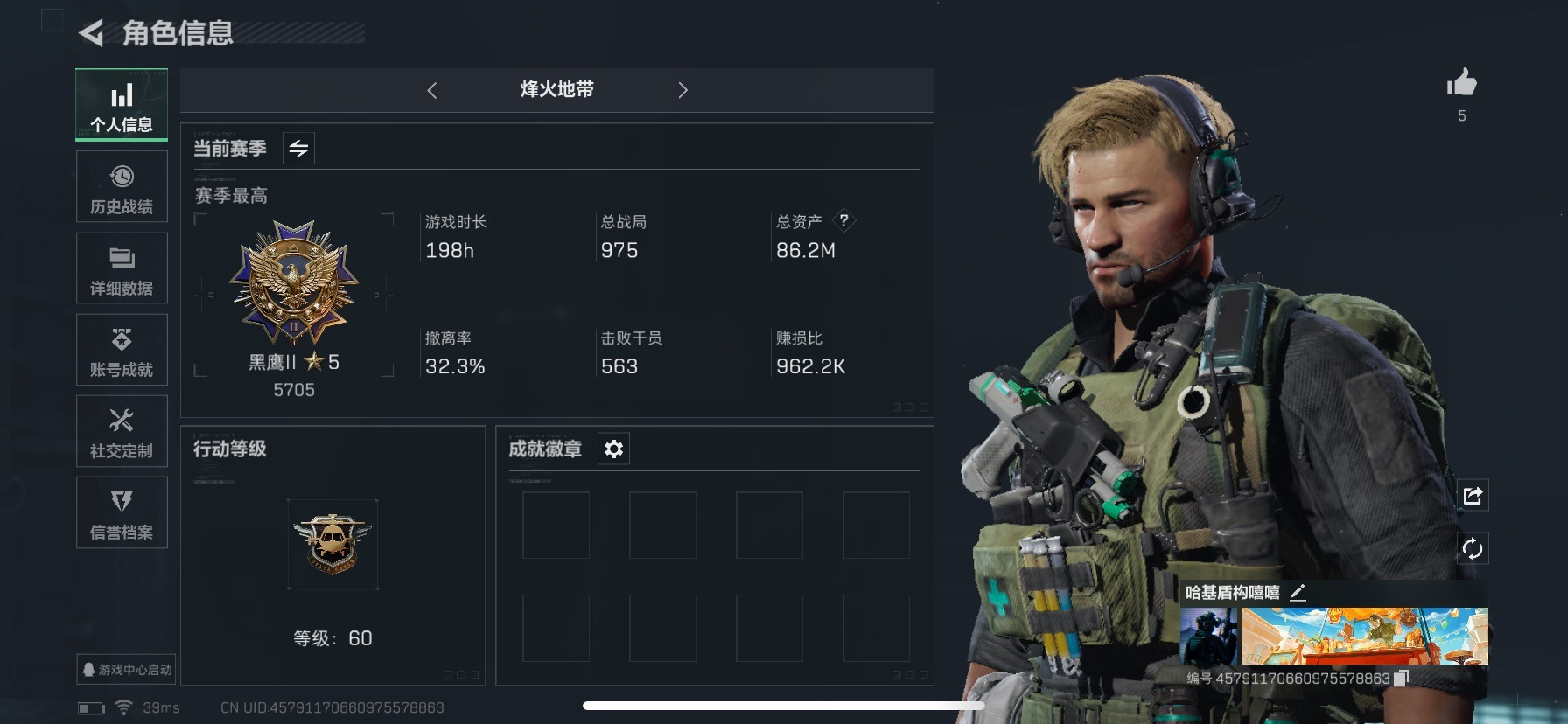 [11876974]总资产:86.2M 8传说枪械 哈夫币:1.003K 进阶安全箱(9.17到期) 可二次 可修改实名 烽火地带段位:黑鹰 全面战场段位:军士长 传说武器皮肤:复合弓-黑-天际线,AWM狙击步枪-捞点薯条,腾龙突击步枪-捞点薯条,93R-捞点薯条,AK-12突击步枪-特斯拉线圈,SR-3M紧凑突击步枪-特斯拉线圈,UZI冲锋枪-特斯拉线圈,勇士冲锋枪-能天使-午夜邮差 史诗武器皮肤:AUG突击步枪-蝮蛇,SV-98狙击步枪-林中猎手,M250通用机枪-囚徒