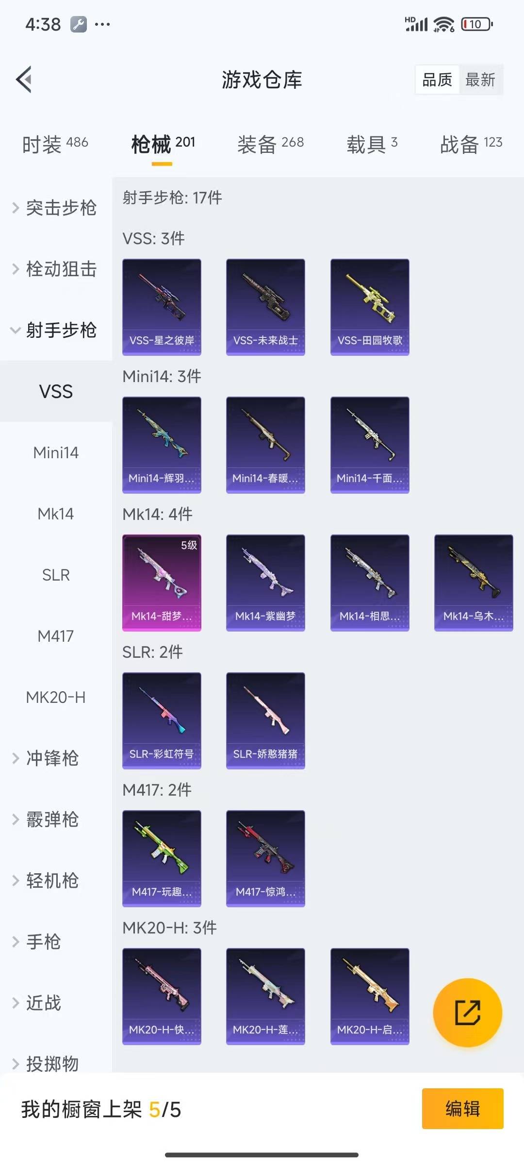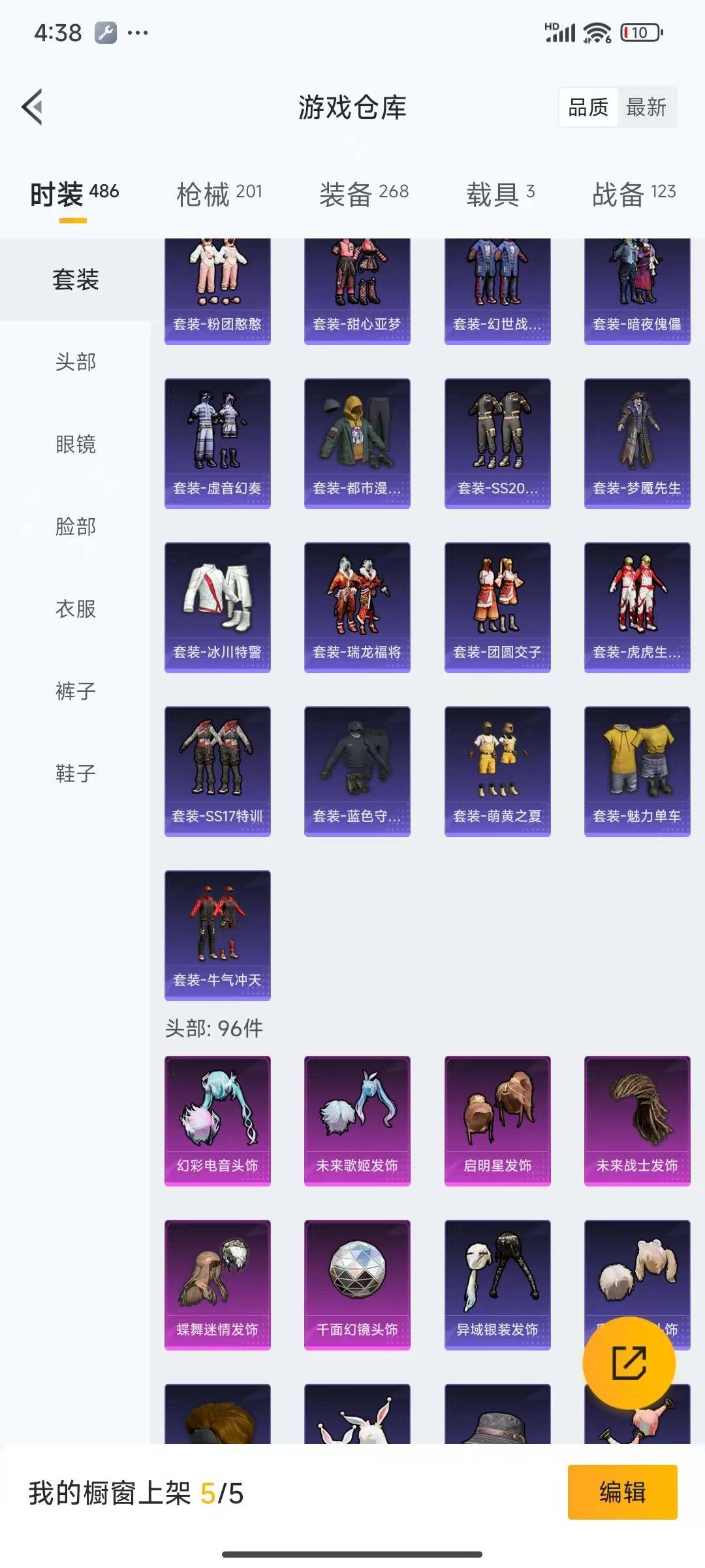 - [11961671]3粉装 8特效枪 1载具 3印记 可二次 可修改实名 身法装备:暗影哥特(红眼罩) 优质装备:最终圣卫者摩托车,MK12-雪月幻音,智耀战神,凤凰座 一辉,AUG-圣斗士星矢,MK14-甜梦熊击,MG3-辉羽雀灵,幻彩电音,Vector-最终圣卫者,平底锅-喜羊羊与灰太狼,Kar98K-巳巳如意 热门装扮:鹰眼刺客 稀有枪皮:DP-28-豹影疾电 五级特效枪:五级Kar98K-巳巳如意,五级DP-28-豹影疾电,五级MK14-甜梦熊击,五级AUG-圣斗士星矢 四级特效枪:四级MK12-雪月幻音 三级特效枪:三级Vector-最终圣卫者,三级MG3-辉羽雀灵 二级特效枪:二级平底锅-喜羊羊与灰太狼 紫色装扮:霓虹热舞,SS31特训套装,云朵鹅,彩虹兔,雪绒豹,SS33特训套装,旭日情侣,诡诞巡游,顶瓜瓜,夏日倾情,时希公主,魅力单车,鹤鸣,玫纹锢梦,长空猛禽,银刃勇者大衣,熔岩游骑兵连帽夹克,无面战甲,沙漠毒蛇,缤纷果语,蓝彩潮人,蓝色运动,鱼渊荷华,燕燕于飞,镭金极速,巳巳如意,异域银装,暗影哥特(红眼罩),浪漫天命,小鸟芋圆,圣穹绘梦,大橘大利,星渊小夜曲,SS32特训服(SS32特训套装),猎影月神,蓝冰羽,紫幽梦,粉恋花,青瓷战姬,白辉玉蕊,恋语绒绒,漫步者 优质战备:创世·救赎降落伞,镜光幻境飞行器(镜光幻境飞行翼),时光之吻降落伞,幻彩电音降落伞,幻星舰长降落伞,最终圣卫者降落伞,雀灵庇佑飞行器,终晖之翼飞行器,冷漠罗丽降落伞,绯穹魔姬降落伞,宁雨蝶降落伞,智趣喵喵飞行器,幻影飞狐降落伞,智耀战神降落伞,圣域金龙飞行器,桃粉嫣然降落伞,樱桃泡泡降落伞