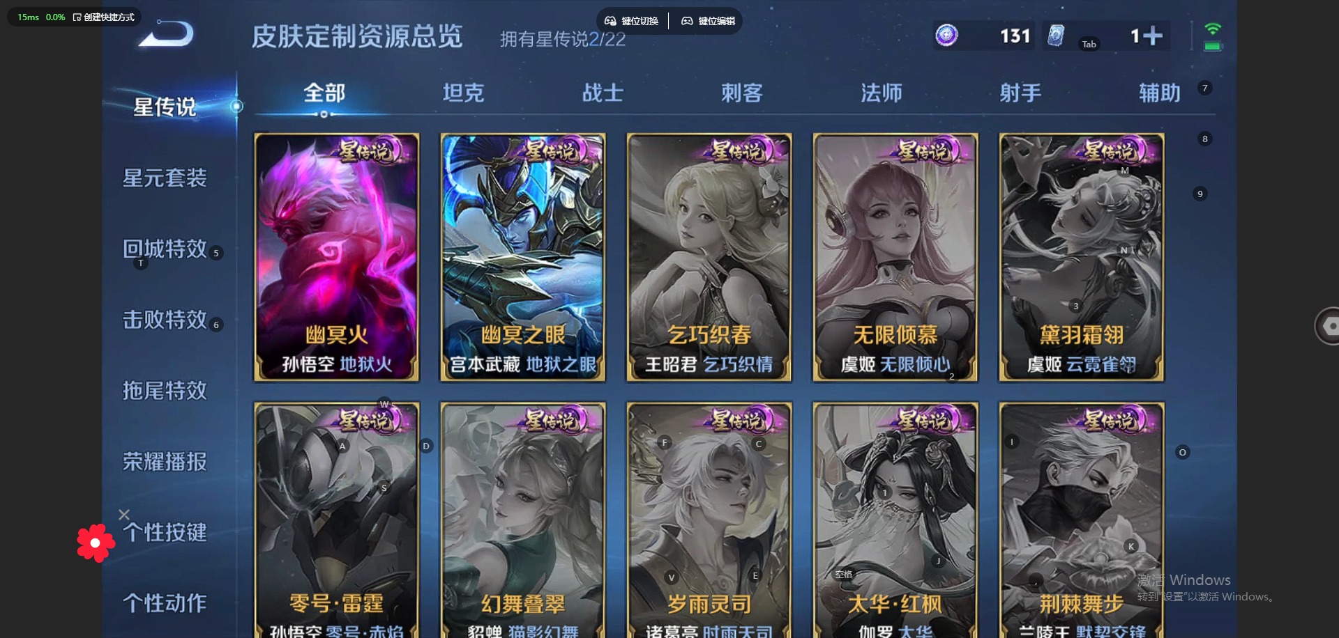 - [11626794]V7 1典藏 4传说 122英雄 203皮肤 可修改实名 优质装备:鸣剑·曳影,末日机甲-孙尚香(绿蚂蚱),地狱火,惊梅引 传说皮:幻光神枪 珍宝阁皮:优雅恋人,蔷薇恋人 限定皮:至尊宝,瑞麟志(木兰年限),高山流水,五谷丰年,梁祝,天狼绘梦者,李小龙,逐梦之影,猪悟能 史诗皮:黄金分割率,千年之狐,电玩·爆裂旋风,江河有灵,偶像歌手,魅语,冰冠公主,猫狗日记-孙策,修罗,女仆咖啡,水果甜心,绅士熊喵,星夜王子,心灵骇客,功夫厨神,德古拉伯爵,暗隐猎兽者,舞动绿茵,纤云弄巧,缤纷独角兽,乘风破浪,逐浪之夏,水晶猎龙者,金属风暴,原初追逐者,圣诞狂欢,圣诞恋歌,鹰眼统帅,王者之锤,魅力维加斯,黎明之约,未来纪元-赵云