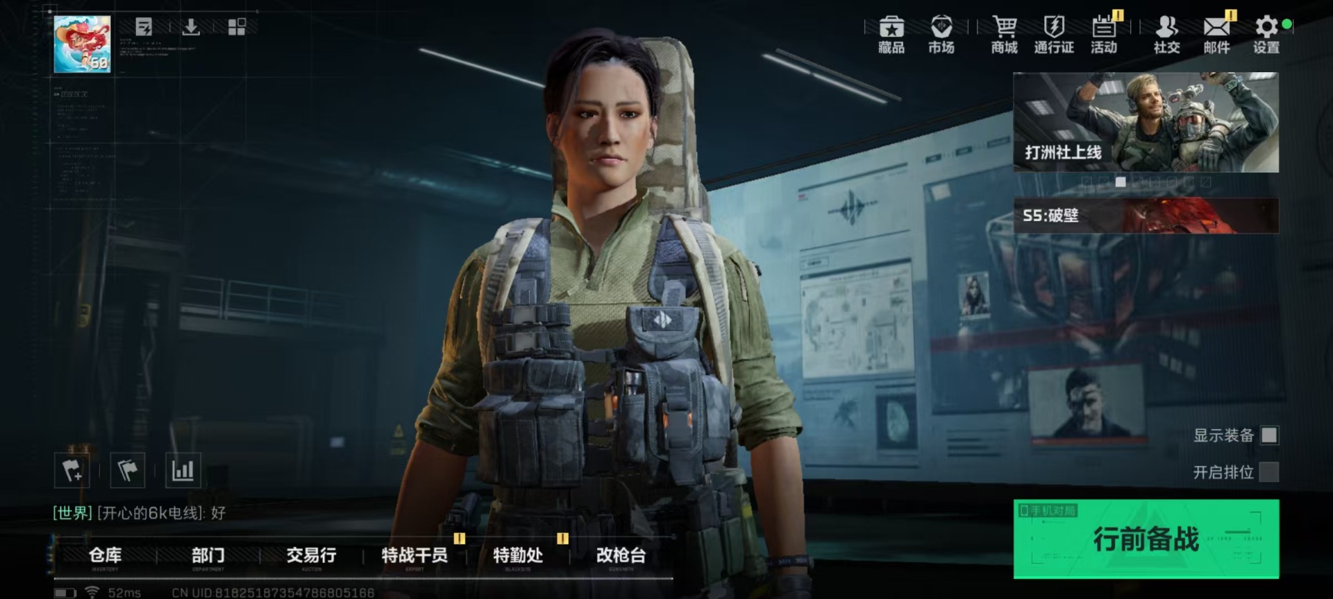 - [12086802]总资产:8.9M 1传说枪械 哈夫币:118.494K 进阶安全箱(9.17到期) 可二次 可修改实名 烽火地带段位:钻石 全面战场段位:上等兵 传说武器皮肤:复合弓-黑-天际线