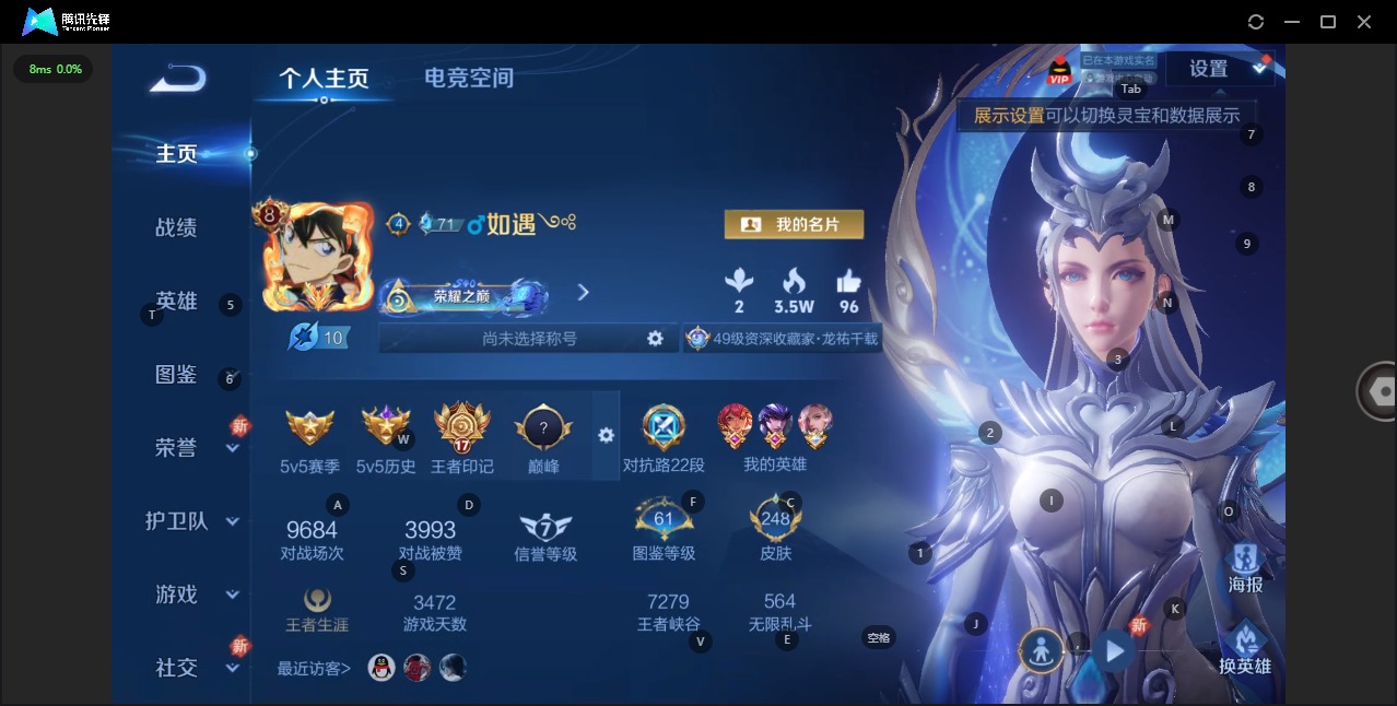- [11530784]V7 1典藏 3珍品传说 11传说 123英雄 247皮肤 可修改实名 优质装备:拾光映像(瑶典藏),怪盗基德,酷洛米之心,大耳狗之梦,黄金射手座,猫影幻舞,音你心动-周瑜,游龙清影(小青龙),霜月吟,朵莉亚心动手记,涂山容容 传说皮:貂蝉曦玄引,续相思,幻光神枪 珍宝阁皮:蔷薇恋人 限定皮:愿照·福禄聚(蔡文姬年限),逐霄战戟,陌上桑,鸣野蒿,高山流水 史诗皮:鸭鸭历险记-刘禅,化蝶舞,星界战将,龙之律动,茶境仙,幻珠鲛人,炽弈燎原,破空之剑,战舞者,涂山红红,东方月初,蒙犽顽岩魄,芈月浮光幕影,上官婉儿群星魔术团,奇遇星旅,蔬乡物语(鲁班七号),乘龙·忆丹青(大乔年限),百相守梦-百里守约,百相守梦-黄忠,织梦人,遇见神鹿,紫霞仙子,特工魅影,江河有灵,高渐离燃音魔法,冰冠公主,青蛇,白蛇,末日机甲-吕布,猫狗日记-孙策,猫狗日记-大乔,乱世虎臣,节奏热浪,女仆咖啡,水果甜心,星夜王子,心灵骇客,暗隐猎兽者,鬼剑武藏,心灵战警,地狱岩魂,纤云弄巧,拒霜思,缤纷独角兽,逐浪之夏,月团寄思,水晶猎龙者,箭羽风息,金属风暴,原初追逐者,圣诞恋歌,鹰眼统帅,魅力维加斯,未来纪元-赵云