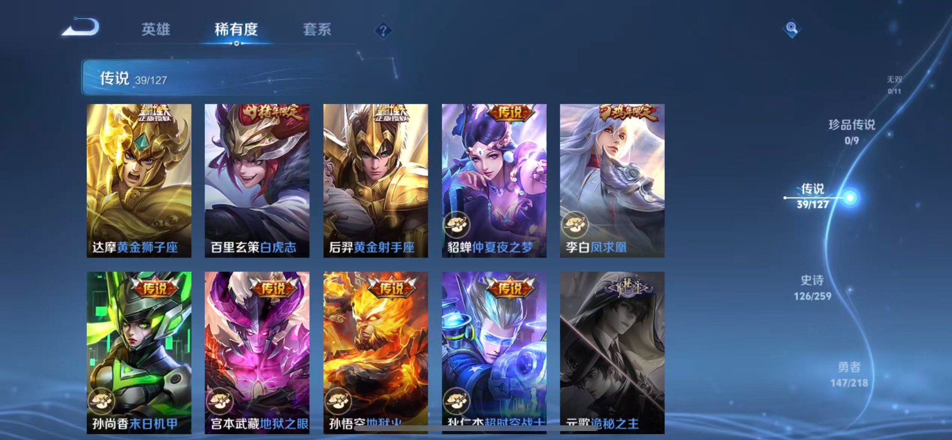 [11878636]V9 2典藏 39传说 125英雄 394皮肤 可修改实名 优质装备:鸣剑·曳影,赤影疾锋,黄金狮子座,黄金射手座,云鹰飞将(小将军),猫影幻舞,久胜战神,炽阳神光,一念神魔,末日机甲-孙尚香(绿蚂蚱),地狱火,仲夏夜之梦(大飞蛾),音你心动-小乔,零号·赤焰,地狱之眼,李逍遥,乞巧织情,时之恋人-刘备(电焊工),超时空战士-狄仁杰,无双飞将,神器·狴犴令,山海·炽霜斩(李信年限),浮生妄,鹤羽星尊,霜月吟,澜逐花归海 传说皮:乘龙·问璇玑(孙尚香年限),乘龙·铭钟鼎(赵云年限),乘龙·淬吴钩(孙策年限),落雪白狼 珍宝阁皮:优雅恋人,蔷薇恋人,玩趣恶龙 限定皮:鸣野蒿,至尊宝,白虎志(电光耗子),凤求凰(白切鸡),梅西,傲雪梅枪,绯月行,白鹤梁神女,白晶晶,时雨天司(水龙头),神威(电光马子),飞衡(韩信年限),瑞麟志(木兰年限),高山流水,诗剑行,五谷丰年,青龙志(铠年限),冰锋战神,武圣,御风骁将(吕布年限),逐梦之星,烈魂,岱宗(典韦年限),天狼溯光者,奔雷神使(牛魔年限),祈雪灵祝(雪兔子),天狼绘梦者,李小龙,逐梦之影,玄武志(苏烈年限),朱雀志(守约年限),辉光之辰,如梦令-嫦娥,霸王别姬-项羽,霸王别姬-虞姬,默契交锋-兰陵王,默契交锋-花木兰,孙行者,猪悟能,一生所爱,大圣娶亲,青春决赛季,冰霜恋舞曲,云端筑梦师,乒乒小将,寅虎·御盾(廉颇年限),深海之息(深海大菠萝),山海·玄木吟(马可年限) 史诗皮:石田雨龙,琥珀纪元伽罗,百相守梦-黄忠,紫霞仙子,苍穹之光,电玩小子(小书包),白龙吟,黄金分割率,特工魅影,千年之狐,永昼,鹤归松栖(赵怀真),江河有灵,百解令(蒙犽),高渐离燃音魔法,蒙恬荣光圣徽,偶像歌手,龙骑士(小龙虾),暗夜猫娘,魅语,晚萤,冰冠公主,末日机甲-吕布,猫狗日记-孙策,猫狗日记-大乔,乱世虎臣,节奏热浪,修罗,女仆咖啡,摇滚巨星,水果甜心,天才门将,星夜王子,心灵骇客,功夫厨神,德古拉伯爵,暗隐猎兽者,幽灵船长,鬼剑武藏,暗渊魔法,心灵战警,天秀·启明,舞动绿茵,地狱岩魂,纤云弄巧,繁星吟游(呼啦呼啦),拒霜思,缤纷独角兽,乘风破浪,逐浪之夏,龙鼓争鸣,月团寄思,水晶猎龙者,热力回旋,箭羽风息,金属风暴,原初追逐者,圣诞狂欢,圣诞恋歌,鹰眼统帅,暗夜贵公子,黎明之约,雪上飞焰,赏金猎手,寅虎·御盾,顽趣-阿古朵,无心,未来