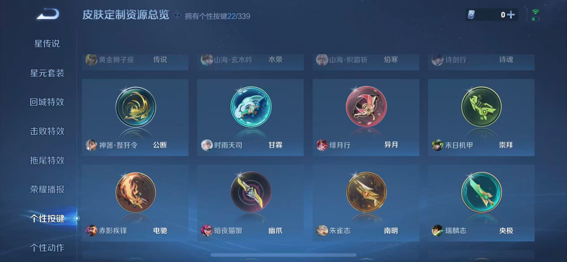 大乔白鹤梁神女,黄忠烈魂,铠青龙志,廉颇寅虎·御盾,伽罗天狼溯光者,苏烈玄武志,干将莫邪冰霜恋舞曲,典韦岱宗,不知火舞绯月行,牛魔奔雷神使,鲁班七号乒乒小将,项羽霸王别姬,吕布御风骁将,后羿辉光之辰,露娜一生所爱,庄周云端筑梦师,诸葛亮时雨天司,兰陵王默契交锋,公孙离祈雪灵祝,裴擒虎梅西,裴擒虎李小龙,上官婉儿天狼绘梦者,李白诗剑行,花木兰默契交锋,花木兰瑞麟志,花木兰青春决赛季,马可波罗逐梦之星,马可波罗山海·玄木吟,马可波罗深海之息,桑启鸣野蒿,猪八戒猪悟能,孙悟空孙行者,孙悟空大圣娶亲,芈月白晶晶,孙悟空至尊宝,百里玄策白虎志,马超神威,韩信傲雪梅枪,韩信飞衡,韩信逐梦之影,百里守约朱雀志,虞姬霸王别姬,嫦娥如梦令,关羽武圣,关羽冰锋战神