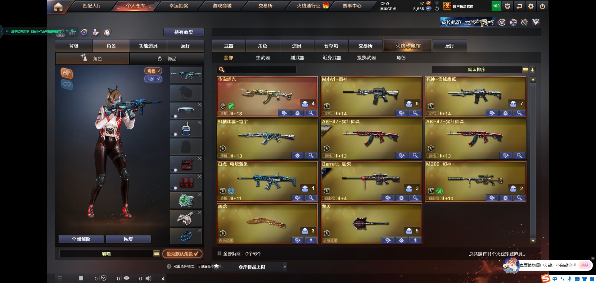 [11878665]可二次 可修改实名 排位资格:有 :1传说武器 11V武器 5皮肤 可排位 枪王 武器:擎天,传说辉光,白虎-电玩蓝兔,死神-雪域霜狐,机械迷城-穹宇,AK-47-猩红传说,屠龙,Barrett-毁灭,M4A1-雷神,M200-幻神