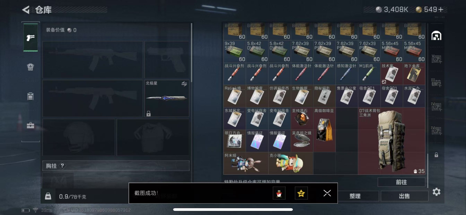[11879119]总资产:98.3M 2干员外观 1近战传说 7传说枪械 哈夫币:3.408K 可二次 可修改实名 优质装备:近战-北极星 烽火地带段位:无段位 全面战场段位:无段位 传说武器皮肤:SCAR-H战斗步枪-水墨云图,K437突击步枪-北极星,QCQ171冲锋枪-北极星,AK-12突击步枪-夜鹰,M4A1突击步枪-蚀金玫瑰,CAR-15突击步枪-黑鹰坠落 干员外观:骇爪-水墨云图,无名-夜鹰