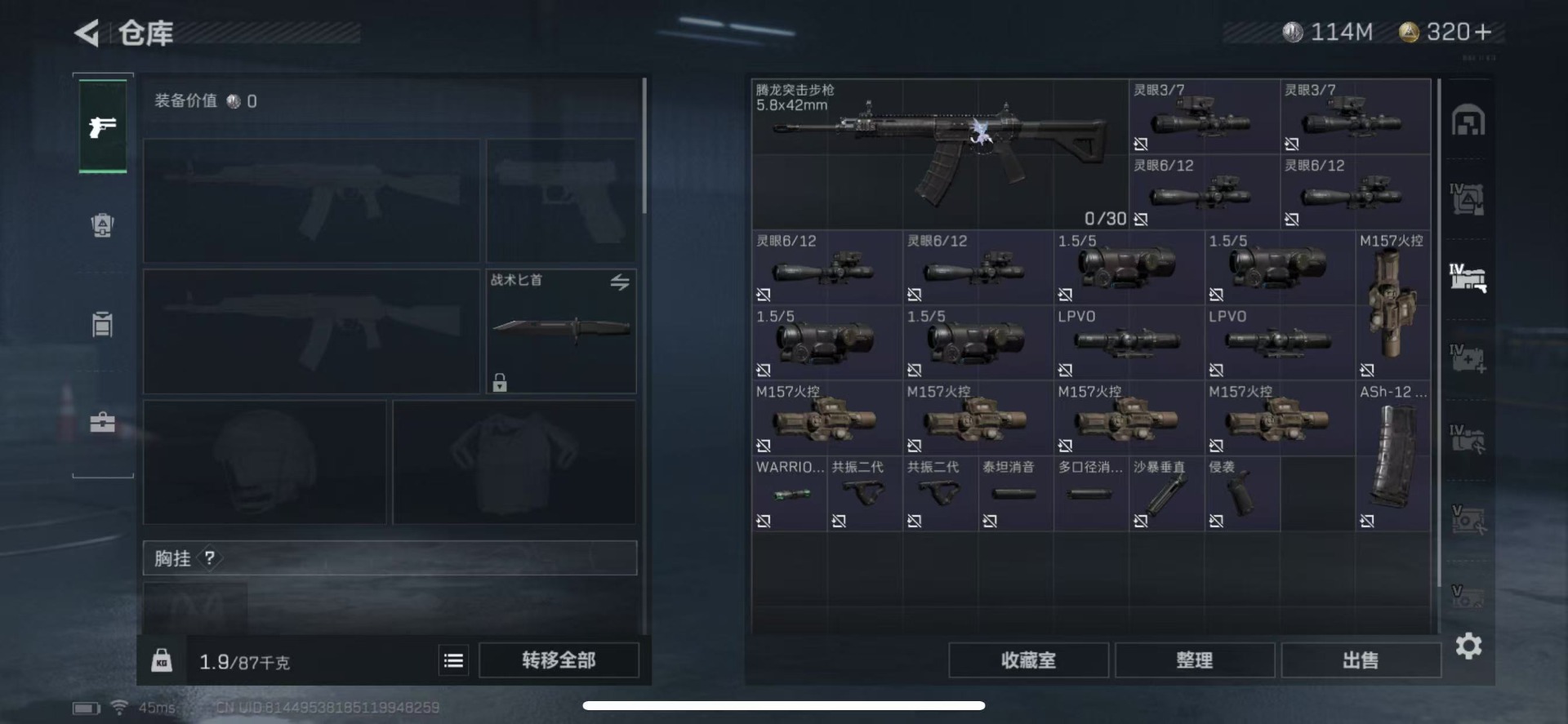[11879241]总资产:284.5M 7传说枪械 哈夫币:114K 可二次 可修改实名 烽火地带段位:无段位 全面战场段位:无段位 传说武器皮肤:SCAR-H战斗步枪-水墨云图,SCAR-H战斗步枪-铁艺苍穹,SMG45冲锋枪-骑士,复合弓-黑-天际线,725双管霰弹枪-送葬人-无题密令,CAR-15突击步枪-阿米娅,AK-12突击步枪-夜鹰 史诗武器皮肤:PTR-32战斗步枪-ACE,QBZ95-1突击步枪-ACE,M4A1突击步枪-特勤执行,Vector冲锋枪-红色彗星,AUG突击步枪-特勤执行,SKS射手步枪-ACE,M700狙击步枪-蝮蛇,G3战斗步枪-战场英杰,SG552突击步枪-尖端治疗,M1014霰弹枪-林中猎手,PKM通用机枪-守夜人,AS Val突击步枪-尖端治疗,M700狙击步枪-守夜人,Ash-12战斗步枪-守夜人,SR-25射手步枪-尖端治疗,勇士冲锋枪-深海恐惧,SG552突击步枪-深海恐惧,AKM突击步枪-林中猎手,.357左轮-幸运时刻,M16A4突击步枪-竞赛选手,M250通用机枪-囚徒,SV-98狙击步枪-林中猎手,PTR-32突击步枪-英雄,AS Val突击步枪-典狱官,SCAR-H战斗步枪-囚徒,PSG-1射手步枪-无垢,PKM通用机枪-荒野求生,QBZ95-1突击步枪-曙光,沙漠之鹰-曙光,SVD狙击步枪-阿萨拉工艺,S12K霰弹枪-曙光,PKM通用机枪-英雄