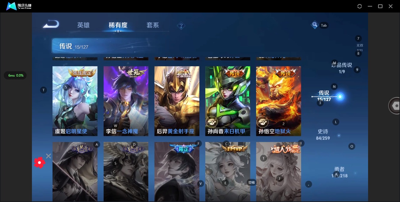 - [11518305]V7 9传说 124英雄 234皮肤 可修改实名 传说皮:黄金射手座,一念神魔,胖达荣荣,超时空战士-狄仁杰,挚爱之约,澜逐花归海 珍宝阁皮:妄想食味,玩趣恶龙 限定皮:逐霄战戟,鸣野蒿,至尊宝,白虎志(电光耗子),白晶晶,时雨天司(水龙头),飞衡(韩信年限),遇见飞天,梁祝,岱宗(典韦年限),天狼征服者,李小龙,霸王别姬-项羽,孙行者,猪悟能,大圣娶亲,冰霜恋舞曲 史诗皮:埋骨钱,怒海争锋,决胜骁骑,化蝶舞,特工魅影,千年之狐,永昼,偶像歌手,龙骑士(小龙虾),末日机甲-吕布,猫狗日记-孙策,乱世虎臣,修罗,摇滚巨星,水果甜心,星夜王子,心灵骇客,暗隐猎兽者,鬼剑武藏,心灵战警,舞动绿茵,逐浪之夏,水晶猎龙者,箭羽风息,圣诞狂欢,圣诞恋歌,鹰眼统帅,暗夜贵公子,黎明之约