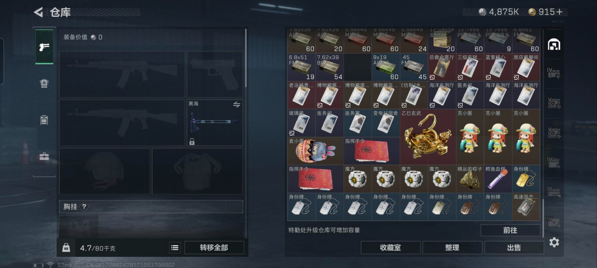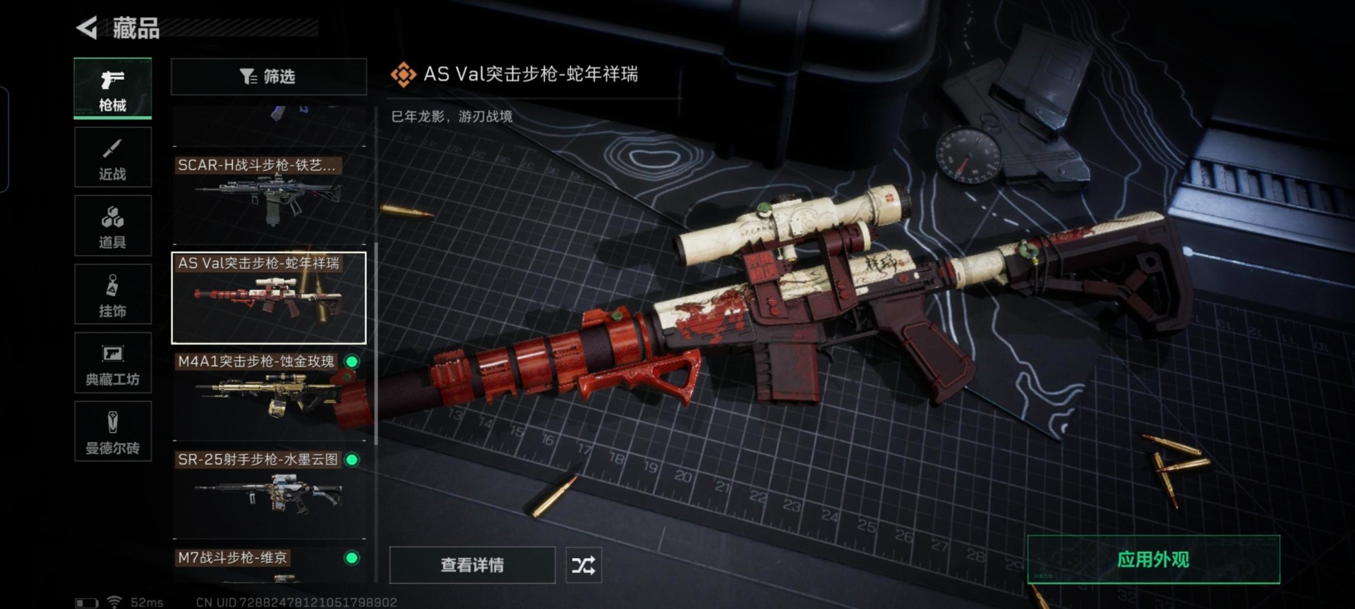 [11879445]总资产:307.5 2干员外观 1近战传说 13传说枪械 可二次 可修改实名 烽火地带段位:黑鹰 全面战场段位:军士长 哈夫币:4.875 传说武器皮肤:近战-黑海,AS Val突击步枪-蛇年祥瑞,SR-25射手步枪-水墨云图,SCAR-H战斗步枪-铁艺苍穹,AK-12突击步枪-夜鹰,SMG45冲锋枪-骑士,QJB201轻机枪-黑海,MP5冲锋枪-黑海,M7战斗步枪-维京,M4A1突击步枪-蚀金玫瑰,P90冲锋枪-神秘艺术,QBZ95-1突击步枪-破军,M7战斗步枪-神秘艺术 干员外观:红狼-蚀金玫瑰,牧羊人-街头之王
