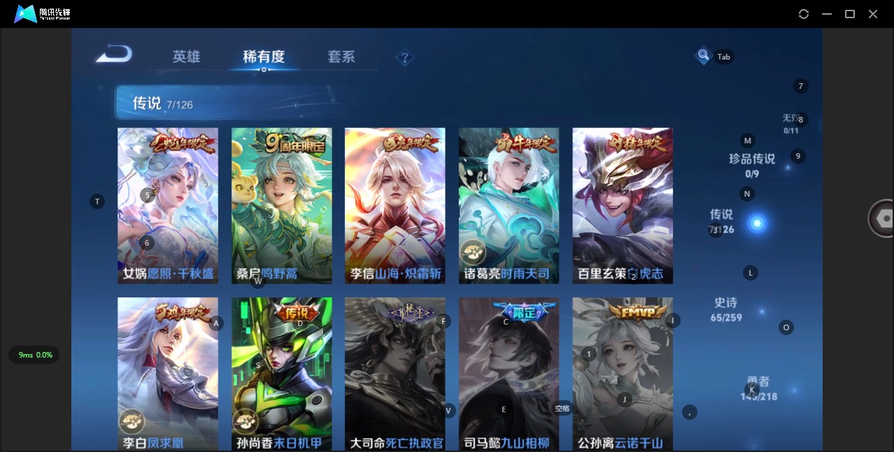 - [11597324]V8 1典藏 2珍品传说 23传说 125英雄 302皮肤 可修改实名 优质装备:弑枪猎影(韩信典藏),酷洛米之心,大耳狗之梦,黄金狮子座,云鹰飞将(小将军),炽阳神光,一念神魔,仲夏夜之梦(大飞蛾),地狱之眼,乞巧织情,时之恋人-刘备(电焊工),超时空战士-狄仁杰,无双飞将,山海·炽霜斩(李信年限),妄想实况,鹤归松栖(云缨),遇见神鼓,鲁班七号-时之奇旅,小动物乐团 传说皮:乘龙·问璇玑(孙尚香年限),落雪白狼,云诺千山,祥瑞亨通 珍宝阁皮:妄想食味,胡桃夹子 限定皮:逐霄战戟,陌上桑,鸣野蒿,至尊宝,山海·碧波行(瑶年限),武圣,梁祝,李小龙,冰霜恋舞曲,匿光启智者 史诗皮:鸭鸭历险记-刘禅,星界特工,星界战将,龙之律动,石田雨龙,百相守梦-周瑜,撼地雄心,破空之剑,埋骨钱,怒海争锋,谪仙醉月,蔬乡物语(鲁班七号),百相守梦-百里守约,炽弈燎原,百相守梦-黄忠,紫霞仙子,黄金分割率,特工魅影,千年之狐,永昼,浮梦罗烟,鹤归松栖(赵怀真),江河有灵,百解令(蒙犽),高渐离燃音魔法,银翎春语,偶像歌手,龙骑士(小龙虾),暗夜猫娘,魅语,无限星赏官,晚萤,冰冠公主,末日机甲-吕布,猫狗日记-孙策,猫狗日记-大乔,乱世虎臣,节奏热浪,修罗,女仆咖啡,摇滚巨星,水果甜心,绅士熊喵,天才门将,星夜王子,心灵骇客,功夫厨神,德古拉伯爵,暗隐猎兽者,幽灵船长,鬼剑武藏,暗渊魔法,心灵战警,乐园奇幻夜,天秀·启明,舞动绿茵,地狱岩魂,诗语江南,拒霜思,缤纷独角兽,乘风破浪,逐浪之夏,水晶猎龙者,曙光守护者,热力回旋,箭羽风息,金属风暴,原初追逐者,圣诞狂欢,圣诞恋歌,鹰眼统帅,暗夜贵公子,魅力维加斯,黎明之约,赏金猎手,未来纪元-赵云