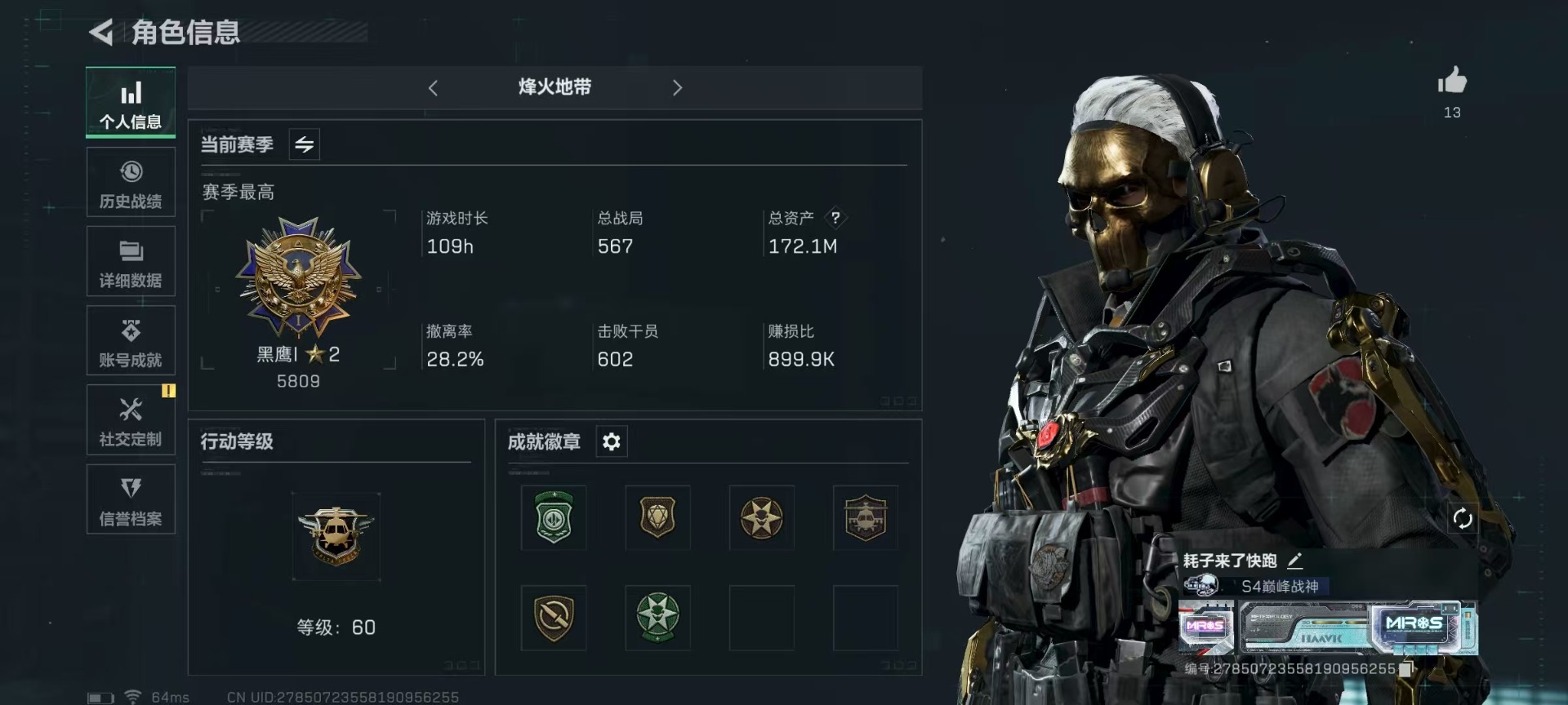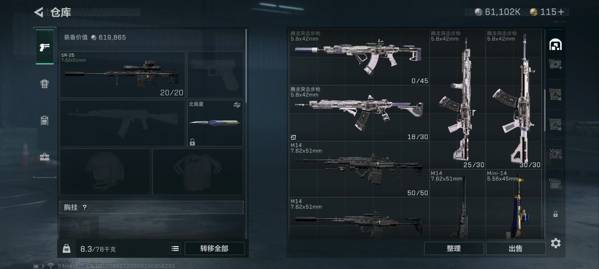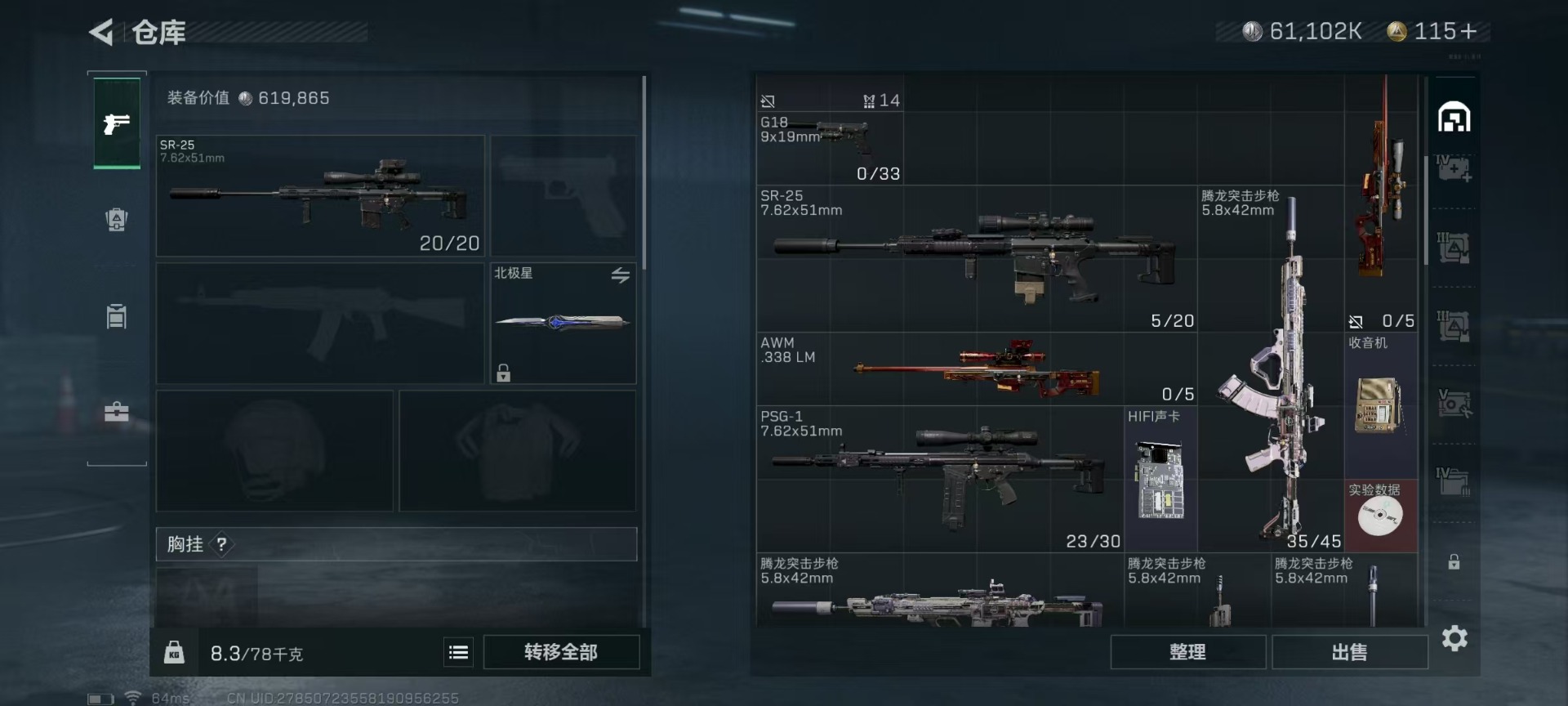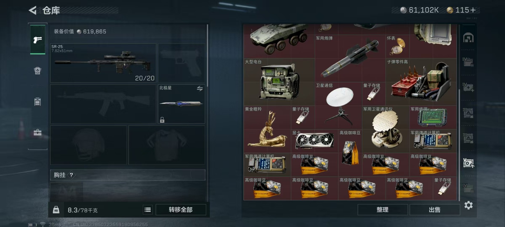[11879495]总资产:107.3 1干员外观 3传说枪械 可二次 可修改实名 烽火地带段位:无段位 全面战场段位:无段位 哈夫币:7.301 传说武器皮肤:AK-12突击步枪-夜鹰,复合弓-黑-天际线,725双管霰弹枪-送葬人-无题密令 史诗武器皮肤:SR-25射手步枪-尖端治疗,MP5冲锋枪-深海恐惧,SR-3M紧凑突击步枪-荒野求生,勇士冲锋枪-深海恐惧,AKM突击步枪-林中猎手,.357左轮-幸运时刻,SVD狙击步枪-暗夜猎手,M16A4突击步枪-竞赛选手,M1014霰弹枪-林中猎手,SV-98狙击步枪-林中猎手,PTR-32突击步枪-英雄,PSG-1射手步枪-无垢,M250通用机枪-囚徒,SV-98狙击步枪-囚徒,S12K霰弹枪-曙光,M14射手步枪-黑鹰坠落 干员外观:露娜-黑·天际线