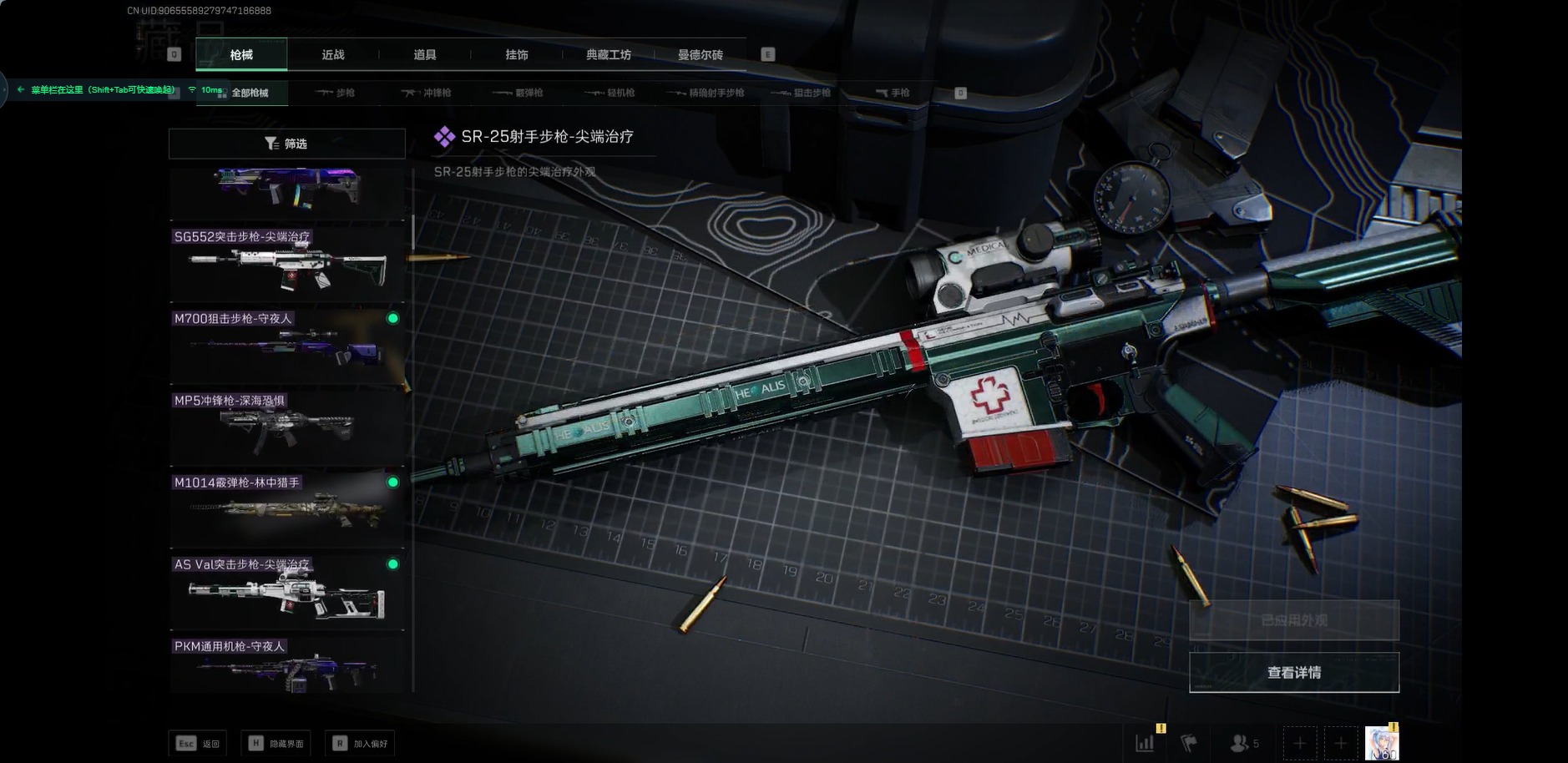 [11879615]总资产:113.5M 3干员外观 1近战传说 11传说枪械 哈夫币:1.329K 可二次 可修改实名 优质装备:近战-黑海,M4A1突击步枪-棱镜攻势(典藏) 烽火地带段位:无段位 全面战场段位:无段位 传说武器皮肤:SR-25射手步枪-水墨云图,SCAR-H战斗步枪-水墨云图,SMG45冲锋枪-骑士,G18-飞虎,AK-12突击步枪-夜鹰,M7战斗步枪-神秘艺术,M4A1突击步枪-蚀金玫瑰,MP5冲锋枪-黑海,QJB201轻机枪-黑海 史诗武器皮肤:SR-3M紧凑突击步枪-英雄,PKM通用机枪-蝮蛇,AUG突击步枪-蝮蛇,M700狙击步枪-蝮蛇,G3战斗步枪-战场英杰,SG552突击步枪-尖端治疗,M1014霰弹枪-林中猎手,PKM通用机枪-守夜人,AS Val突击步枪-尖端治疗,M700狙击步枪-守夜人,Ash-12战斗步枪-守夜人,SR-25射手步枪-尖端治疗,MP5冲锋枪-深海恐惧,勇士冲锋枪-深海恐惧,SG552突击步枪-深海恐惧,AKM突击步枪-林中猎手,M16A4突击步枪-竞赛选手,SVD狙击步枪-暗夜猎手,QBZ95-1突击步枪-曙光,沙漠之鹰-曙光,Vector冲锋枪-阿萨拉文明,SVD狙击步枪-阿萨拉工艺,PKM通用机枪-英雄,M700狙击步枪-竞技风,QSZ92G-风林火山,93R-博士,ASh-12战斗步枪-刀锋 干员外观:红狼-蚀金玫瑰,骇爪-水墨云图,威龙-飞虎