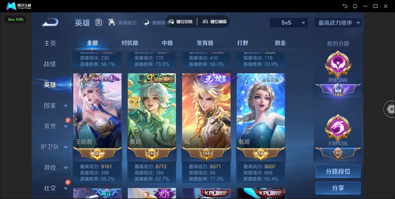 - [11518529]V6 1珍品传说 7传说 123英雄 113皮肤 可修改实名 优质装备:黑崎一护,黄金狮子座,黄金射手座,绛天战甲(鸡嘴战神),乞巧织情,无双飞将,音你闪耀(rap皮) 限定皮:逐霄战戟,鸣野蒿 史诗皮:鸭鸭历险记-刘禅,龙之律动,雪豹·霜爪,小牛鸭,石田雨龙,百相守梦-黄忠,遇见神鹿,紫霞仙子,黄金分割率,青蛇,乱世虎臣,女仆咖啡,摇滚巨星,水果甜心,心灵骇客,鬼剑武藏,心灵战警,天秀·启明,逐浪之夏,热力回旋,金属风暴,暗夜贵公子,魅力维加斯