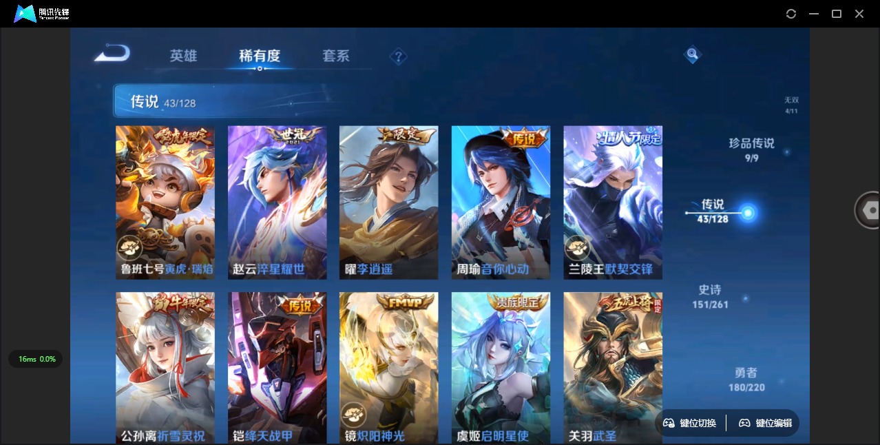 - [12105729]V7 12传说 124英雄 181皮肤 可修改实名 优质装备:猫影幻舞,久胜战神,云霓雀翎,末日机甲-孙尚香(绿蚂蚱),仲夏夜之梦(大飞蛾),地狱之眼 珍宝阁皮:蔷薇恋人 限定皮:愿照·九州拓(澜年限),愿照·岁时盈(虞姬年限),愿照·众生和(妲己年限),愿照·千秋盛(女娲年限),逐霄战戟,鸣野蒿,傲雪梅枪,齐天大圣,五谷丰年 史诗皮:绮世丹青,化蝶舞,龙之律动,雪豹·霜爪,茶境仙,撼地雄心,破空之剑,百相守梦-百里守约,星界特工,百相守梦-黄忠,紫霞仙子,特工魅影,千年之狐,江河有灵,真我赫兹(百里守约),青蛇,暗夜猫娘,末日机甲-吕布,猫狗日记-孙策,时之恋人-孙尚香,水果甜心,时之奇旅-安琪拉,功夫厨神,鬼剑武藏,暗渊魔法,心灵战警,水晶猎龙者,曙光守护者,唤灵魅影,圣诞恋歌,鹰眼统帅,魅力维加斯,未来纪元-赵云