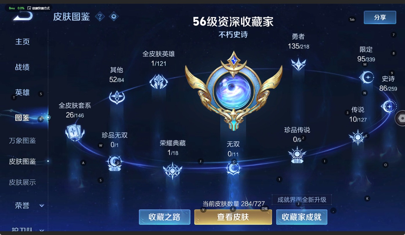 [11879981]V8 1典藏 10传说 124英雄 284皮肤 可修改实名 优质装备:弑枪猎影(韩信典藏),黄金射手座,云鹰飞将(小将军),一念神魔,仲夏夜之梦(大飞蛾) 传说皮:幻光神枪 珍宝阁皮:妄想食味,蔷薇恋人,玩趣恶龙 限定皮:愿照·山河定(司空震年限),逐霄战戟,鸣野蒿,傲雪梅枪,飞衡(韩信年限),山海·碧波行(瑶年限),诗剑行,五谷丰年,青龙志(铠年限),梁祝,御风骁将(吕布年限),龙胆,天狼征服者,如梦令-后羿,霸王别姬-虞姬,孙行者,大圣娶亲,时之祈愿-瑶(瑶传限),百木心枪,时之奇旅-妲己 史诗皮:鸭鸭历险记-刘禅,龙之律动,石田雨龙,茶境仙,破空之剑,战舞者,蔬乡物语(鲁班七号),乘龙·忆丹青(大乔年限),遇见神鹿,电玩小子(小书包),黄金分割率,特工魅影,千年之狐,永昼,百解令(蒙犽),高渐离燃音魔法,偶像歌手,暗夜猫娘,魅语,晚萤,末日机甲-吕布,猫狗日记-孙策,猫狗日记-大乔,时之恋人-孙尚香,乱世虎臣,修罗,女仆咖啡,水果甜心,绅士熊喵,天才门将,星夜王子,心灵骇客,功夫厨神,德古拉伯爵,暗隐猎兽者,幽灵船长,鬼剑武藏,暗渊魔法,心灵战警,天秀·启明,繁星吟游(呼啦呼啦),缤纷独角兽,乘风破浪,逐浪之夏,月团寄思,水晶猎龙者,曙光守护者,金属风暴,圣诞狂欢,鹰眼统帅,暗夜贵公子,魅力维加斯,未来纪元-赵云