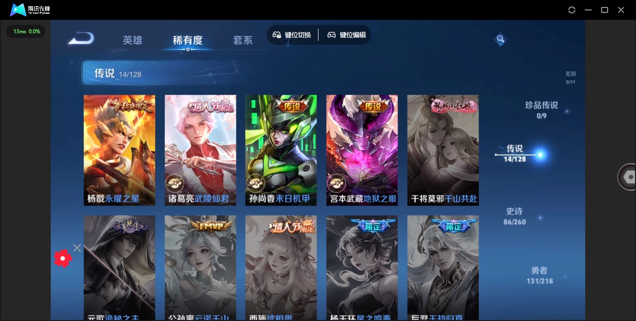 - PX_2114514-Q/至尊星耀/220皮肤/124英雄/0典藏/0珍品无双/0无双/0珍品传说/10传说/48史诗/8稀有英雄 【10 传说皮肤】云霓雀翎 虞姬,地狱火 孙悟空,诗剑行 李白,地狱之眼 宫本武藏,时雨天司 诸葛亮,炽阳神光 镜,黄金狮子座 达摩,末日机甲 孙尚香,太华 伽罗,音你闪耀 孙尚香, 【48 史诗皮肤】电玩小子 鲁班七号,高山流水 庄周,银河之约 李元芳,暗影游猎 马
