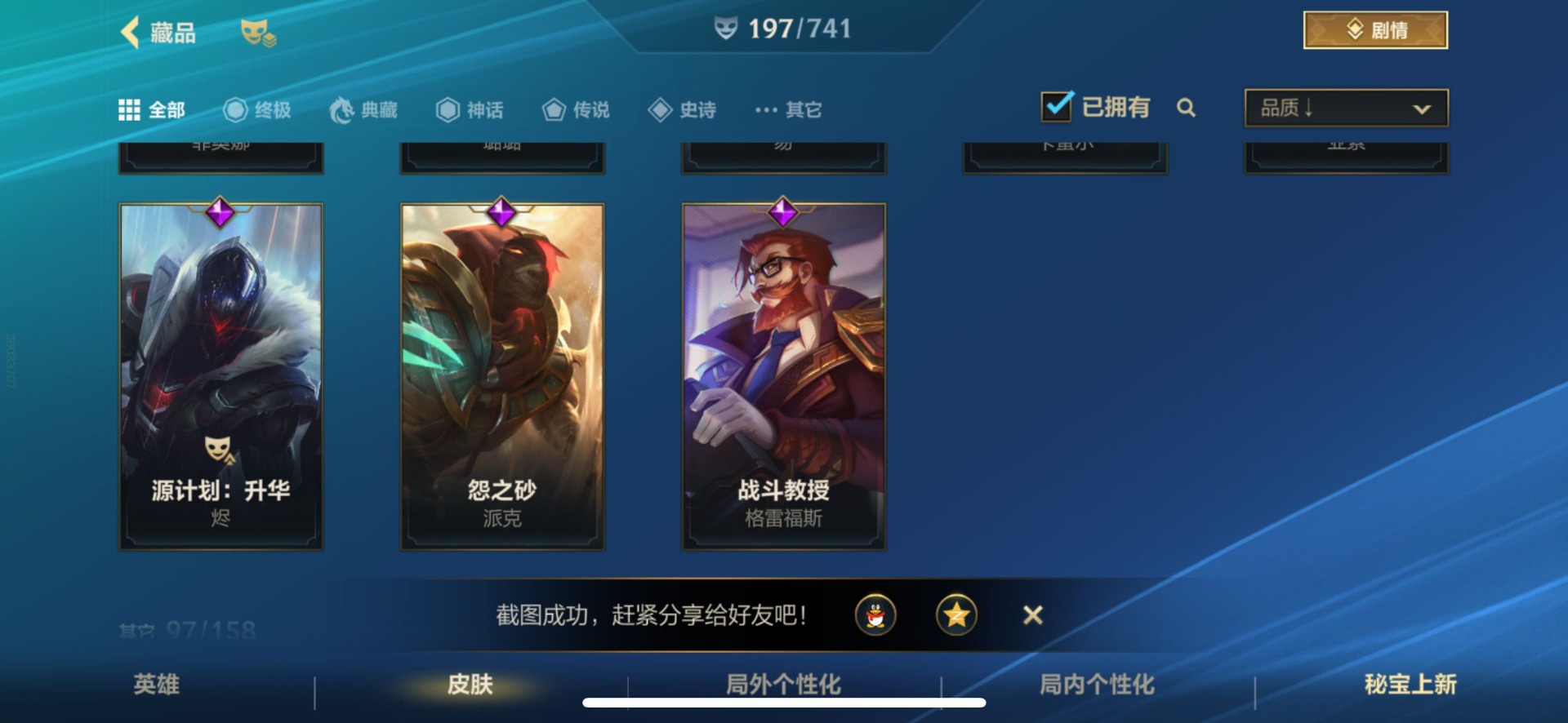 - [11912893]V7 2珍品传说 8传说 123英雄 179皮肤 可修改实名 优质装备:器灵·落星盏,朽木白哉,黄金狮子座,黄金射手座,黄金白羊座,地狱之眼,涂山容容 传说皮:乘龙·铭钟鼎(赵云年限),落雪白狼 珍宝阁皮:胡桃夹子 限定皮:愿照·九州拓(澜年限),愿照·山河定(司空震年限),飞衡(韩信年限),降魔,五谷丰年,天狼狩猎者,李小龙,冰霜恋舞曲,山海·玄木吟(马可年限) 史诗皮:器灵·浮梦炉,化蝶舞,龙之律动,石田雨龙,百相守梦-黄忠,织梦人,紫霞仙子,黄金分割率,特工魅影,千年之狐,永昼,魅语,百解令(蒙犽),偶像歌手,暗夜猫娘,末日机甲-吕布,猫狗日记-孙策,时之恋人-孙尚香,乱世虎臣,修罗,女仆咖啡,摇滚巨星,水果甜心,功夫厨神,鬼剑武藏,舞动绿茵,纤云弄巧,水晶猎龙者,曙光守护者,金属风暴,圣诞狂欢,鹰眼统帅,黎明之约