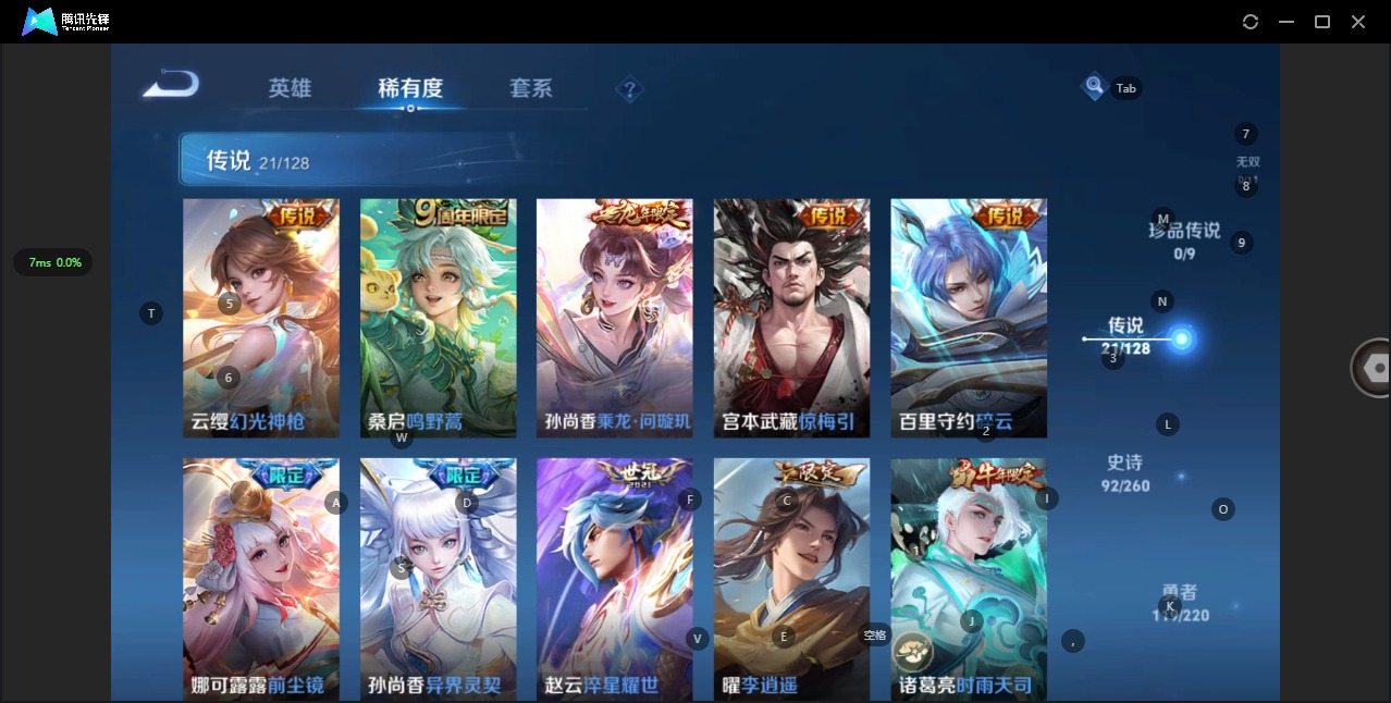- [11632578]V8 2典藏 17传说 124英雄 248皮肤 可修改实名 优质装备:无限飓风号(高达),全息碎影(猴子典藏),猫影幻舞,云霓雀翎,末日机甲-孙尚香(绿蚂蚱),地狱火,仲夏夜之梦(大飞蛾),淬星耀世,遇见胡旋 珍宝阁皮:优雅恋人,蔷薇恋人 限定皮:愿照·岁时盈(虞姬年限),愿照·众生和(妲己年限),至尊宝,白虎志(电光耗子),太华(伽罗年限),武陵仙君(小桃花),异界灵契(白毛香),白鹤梁神女,白晶晶,遇见飞天,高山流水,齐天大圣,青龙志(铠年限),冰锋战神,游园惊梦,梁祝,御风骁将(吕布年限),龙胆,岱宗(典韦年限),天狼溯光者,李小龙,逐梦之光,永曜之星,霸王别姬-项羽,霸王别姬-虞姬,孙行者,猪悟能,一生所爱,大圣娶亲,天魔缭乱,热情桑巴,百木心枪 史诗皮:器灵·浮梦炉,化蝶舞,龙之律动,石田雨龙,百相守梦-黄忠,苍穹之光,电玩小子(小书包),白龙吟,特工魅影,千年之狐,偶像歌手,暗夜猫娘,冰冠公主,猫狗日记-大乔,时之恋人-孙尚香,乱世虎臣,节奏热浪,女仆咖啡,水果甜心,星夜王子,心灵骇客,时之奇旅-安琪拉,功夫厨神,德古拉伯爵,暗隐猎兽者,幽灵船长,鬼剑武藏,心灵战警,天秀·启明,舞动绿茵,纤云弄巧,繁星吟游(呼啦呼啦),拒霜思,缤纷独角兽,乘风破浪,逐浪之夏,水晶猎龙者,唤灵魅影,金属风暴,原初追逐者,圣诞狂欢,圣诞恋歌,鹰眼统帅,暗夜贵公子,魅力维加斯,黎明之约,未来纪元-赵云