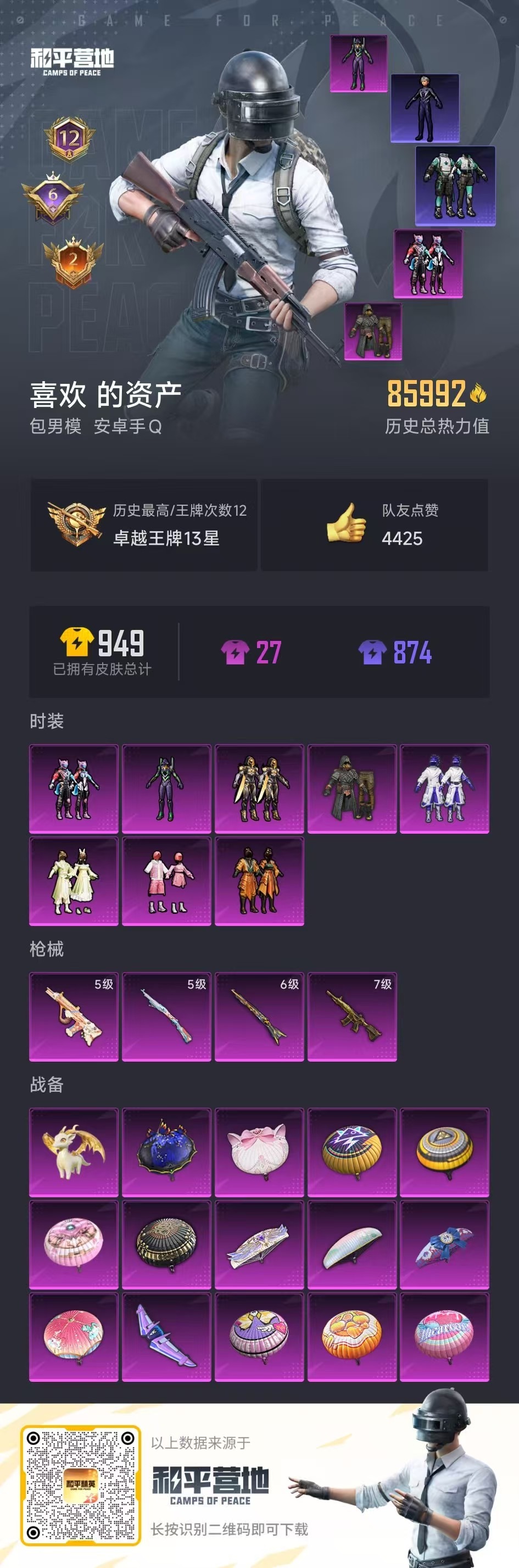 [11880880]8粉装 4特效枪 12印记 可二次 可修改实名 身法装备:暗影哥特(红眼罩),初号机款机体服(紫螳螂) 热门装扮:幻影飞狐,奇异狩猎者,初号机款机体服(紫螳螂),极限特训,新星烈龙(小白龙),鸾凤武仙,飒粉甜心,闲梦青缨,创世·救赎,迅捷狂鲨,梦魇先生,深海小丑鱼 载具:僚机-圣域龙宝 稀有枪皮:AUG-暖羊咩咩,Kar98K-巳巳如意,Kar98K创世·救赎,M416五爪金龙 七级特效枪:七级M416-五爪金龙 六级特效枪:六级Kar98K-创世·救赎 五级特效枪:五级Kar98K-巳巳如意,五级AUG-暖羊咩咩 紫色装扮:照水倚天,和煦暖阳,田园牧歌,轻风白浪,SS22特训,萌趣咩咩,SS20特训,SS21特训,暖心橘喵,娇憨猪猪,幻彩翩翩,人气偶像,军械专家,飞狐塔尔斯,SS30特训套装,妙红点点,灵蜜圈圈,SS23特训,SS31特训套装,青涩时光,特种颜团子,SS15特训,萌趣颜团子,隐空刺,SS13特训,SS14特训,治愈之星,科技之星,飞驰魅影,SS18特训,雪兔飞飞,音速流光,极速竞梦,SS19特训,冰川特警,SS16特训,薰款战斗服,真嗣款战斗服,SS17特训,蓝色运动,虎虎生威吉莉,街头潮人,蓝彩潮人,都市漫游者,都市魅力,酒红色名流,酷潮明星,野性战心,空岛之星,竞技达人朋克,红色运动,绮丽涂鸦,缤纷果语,耀眼新星,荣耀,长空猛禽,冰河战士,龙魂突击队,蝶变,龟仙人,龙腾端午,风暴特警,雪鹰学院,霓虹街区,青年教官,龙的传人,飞行日记,魅力单车,鹤鸣,麻辣教官,黄色伏地魔,黄色名流,黄色运动,黑色伏地魔,福星高照,战地督导,极地朋克,极速红龙,柠萌假日,格斗先锋,橘黑制服,沙漠雄狮,冷焰舞者,吉莉礼服,坚韧舞者,夏日倾情,夏日音浪,完美偶像,帅气教官,幻世战舞者,幻影武者,活力之心,特战英豪,特殊使命,特训学院,狂沙舞者,猎鹰,猛禽,王牌教练,白熊同盟,白色伏地魔,破晓战魂,破蛋小黄鸡,海岛探路者,涂山之恋,深蓝色名流,湖蓝色名流,牛气满满,灼焰舞者,炫蓝之夏,热血青春,燃烧卡路里,牛气冲天,小熊娃娃,雏菊兔兔,萝兰蝴蝶,SS29特训,米开朗基罗,纯真浪花,热情海星,曼妙人鱼,SS28特训,创世·幻影,创世·追猎,燕燕于飞,暗影哥特(红眼罩),鱼渊荷华,玉兔迎春,巳巳如意,烈火街头,森林游猎者,炽纹蛇影,星途旅人,青团波波,糖糖葫芦,棉花软糖,竞