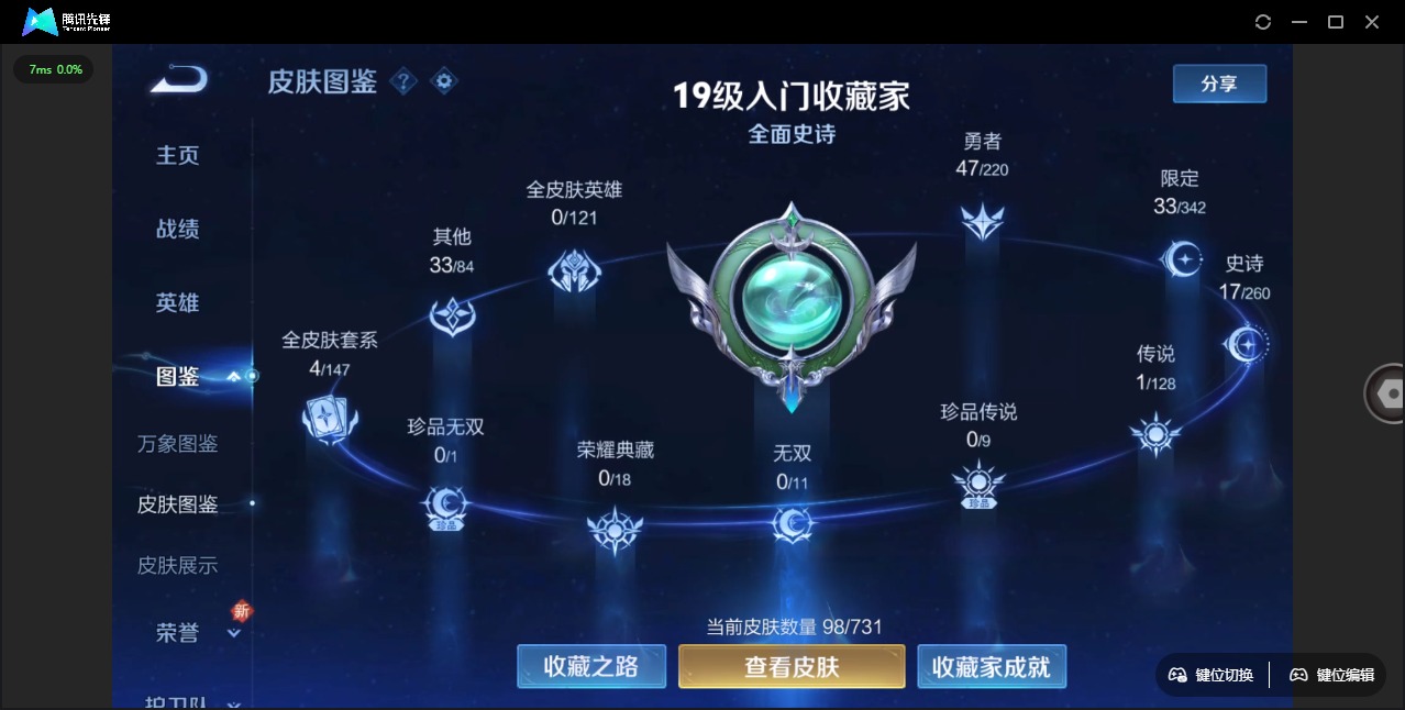 - PX_2078150-贵族等级: V3 英雄数: 73 皮肤数: 37 限定皮: 如梦令-后羿,高山流水