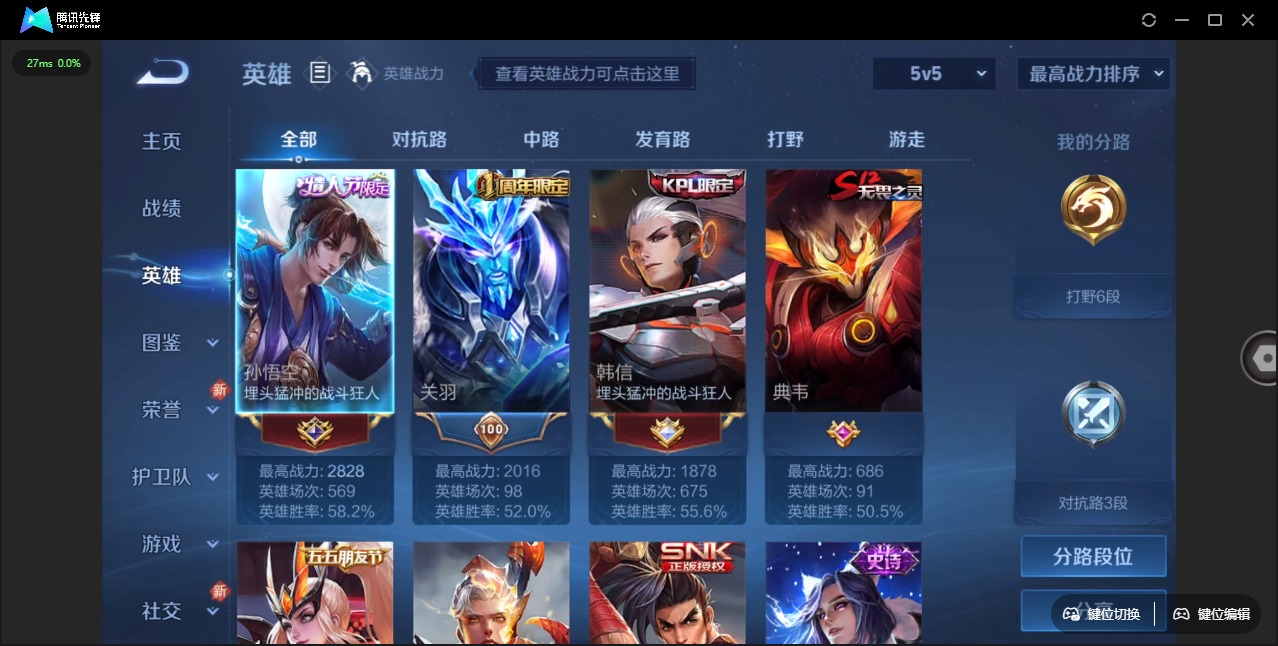[11881111]V6 1传说 119英雄 98皮肤 可修改实名 限定皮:鸣野蒿,至尊宝,遇见飞天,五谷丰年,冰锋战神,逐梦之影 史诗皮:白龙吟,千年之狐,末日机甲-吕布,水果甜心,绅士熊喵,德古拉伯爵,水晶猎龙者,鹰眼统帅,魅力维加斯