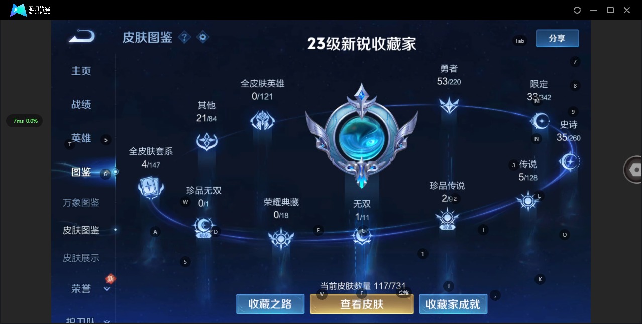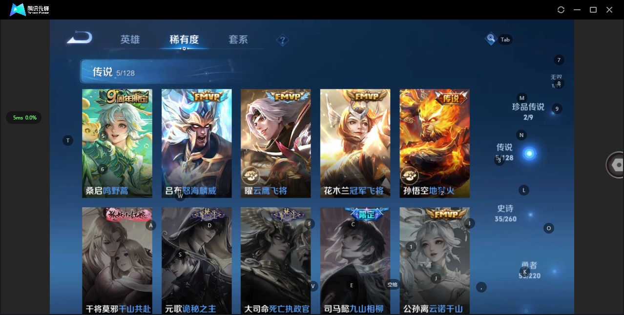 - [11515385]V7 2传说 123英雄 258皮肤 典藏英雄武则天 可修改实名 传说皮:末日机甲-孙尚香(绿蚂蚱) 珍宝阁皮:优雅恋人,蔷薇恋人,女武神 限定皮:凤求凰(白切鸡),遇见飞天,青龙志(铠年限),游园惊梦,梁祝,李小龙,如梦令-后羿,孙行者,猪悟能,大圣娶亲,冰霜恋舞曲,寅虎·御盾(廉颇年限) 史诗皮:紫霞仙子,黄金分割率,千年之狐,永昼,江河有灵,冰冠公主,偶像歌手,晚萤,无限星赏官,魅语,百相守梦(刘备),末日机甲-吕布,猫狗日记-孙策,乱世虎臣,摇滚巨星,水果甜心,天才门将,星夜王子,心灵骇客,时之奇旅-安琪拉,功夫厨神,暗隐猎兽者,幽灵船长,鬼剑武藏,舞动绿茵,地狱岩魂,纤云弄巧,繁星吟游(呼啦呼啦),拒霜思,逐浪之夏,水晶猎龙者,金属风暴,原初追逐者,圣诞恋歌,鹰眼统帅,魅力维加斯,奇遇舞章,寅虎·御盾,无心,未来纪元-赵云
