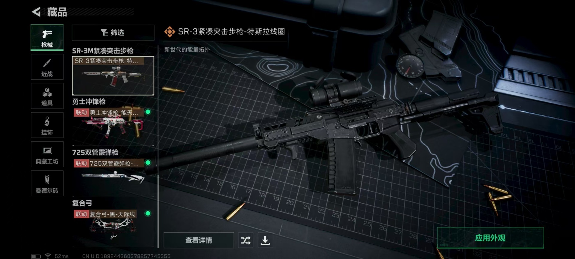 - [11297480]总资产:93.7M 7传说枪械 哈夫币:52.924K 可二次 可修改实名 烽火地带段位:无段位 全面战场段位:无段位 传说武器皮肤:M4A1突击步枪-阿米娅,CAR-15突击步枪-阿米娅,复合弓-黑-天际线,AK-12突击步枪-特斯拉线圈,SR-3M紧凑突击步枪-特斯拉线圈,UZI冲锋枪-特斯拉线圈,勇士冲锋枪-能天使-午夜邮差 史诗武器皮肤:SV-98狙击步枪-林中猎手,SCAR-H战斗步枪-囚徒